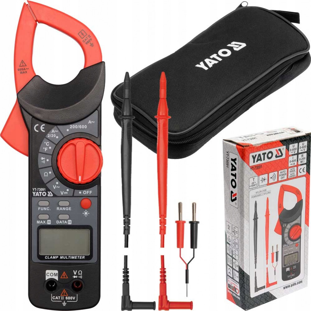 YT-73091 – это универсальный измерительный прибор. Представляет собой цифровые измерительные клещи. Прибор оснащен измерительными зажимами, позволяющими определить переменный ток в одном проводнике индукцией. Таким образом, можно измерить намного более высокие токи, чем при помощи простых счетчиков до 600А. Прибор способен работать с кабелями диаметром до 37мм.