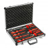 Все элементы комплекта подходят для работы под напряжением до 1000 В. Стержни отверток изготовлены из хромомолибденовой стали, прочной и долговечной. Губки из хромованадиевой стали, кованые. Двухкомпонентные эргономичные рукоятки гарантируют лучший баланс и контроль над изделием.