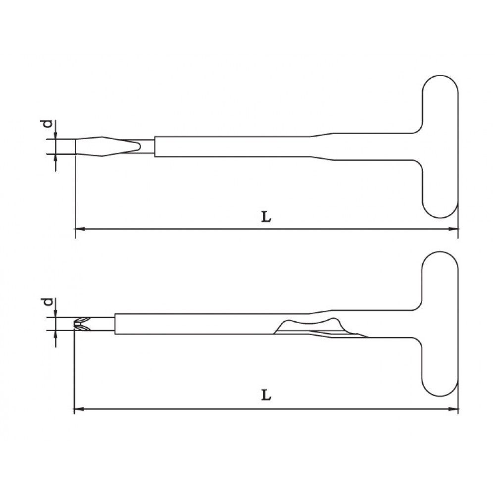 Отвертка Т-образная НИЗ с крестообразной рабочей частью предназначена для работы в электроустановках напряжением до 1000В переменного и 1500В постоянного тока. Материал изолирующего покрытия: грунтовка, двухслойный пластизоль разного цвета.