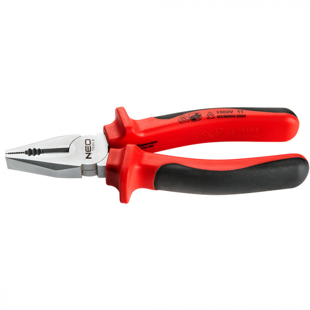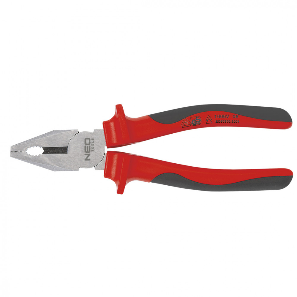 Плоскогубцы комбинированные 1000 В NEO разработаны в соответствии со стандартом DIN 5746. Предназначены для работы под напряжением до 1000 В. Губки, изготовленные из хромованадиевой стали высокого качества, подвергнуты индукционной закалке (55-60 HRC), обеспечат эффективную резку и формирование жесткой проволоки.