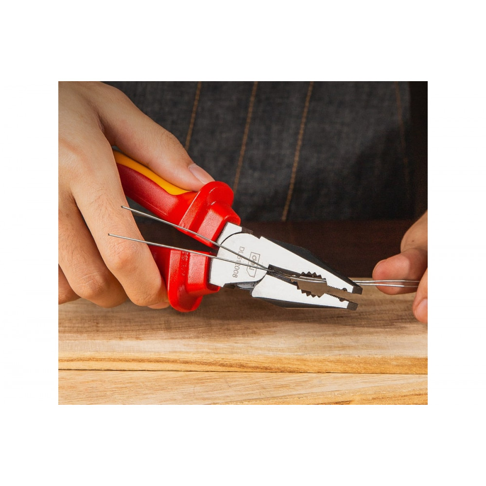 Плоскогубцы диэлектрические DL512008 от ТМ DELI созданы для того, чтобы защитить своего владельца от опасности, связанной с работой с объектами под напряжением. Обладая сертификатом безопасности VDE, они способны выдерживать напряжение до 1000 вольт, обеспечивая спокойствие и уверенность в процессе работы.