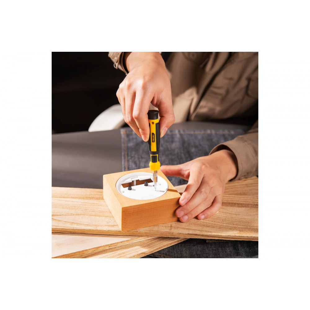 Благодаря пластиковому боксу с индивидуальными ячейками для каждого инструмента и прозрачной крышкой, вы сможете легко найти нужную биту.
