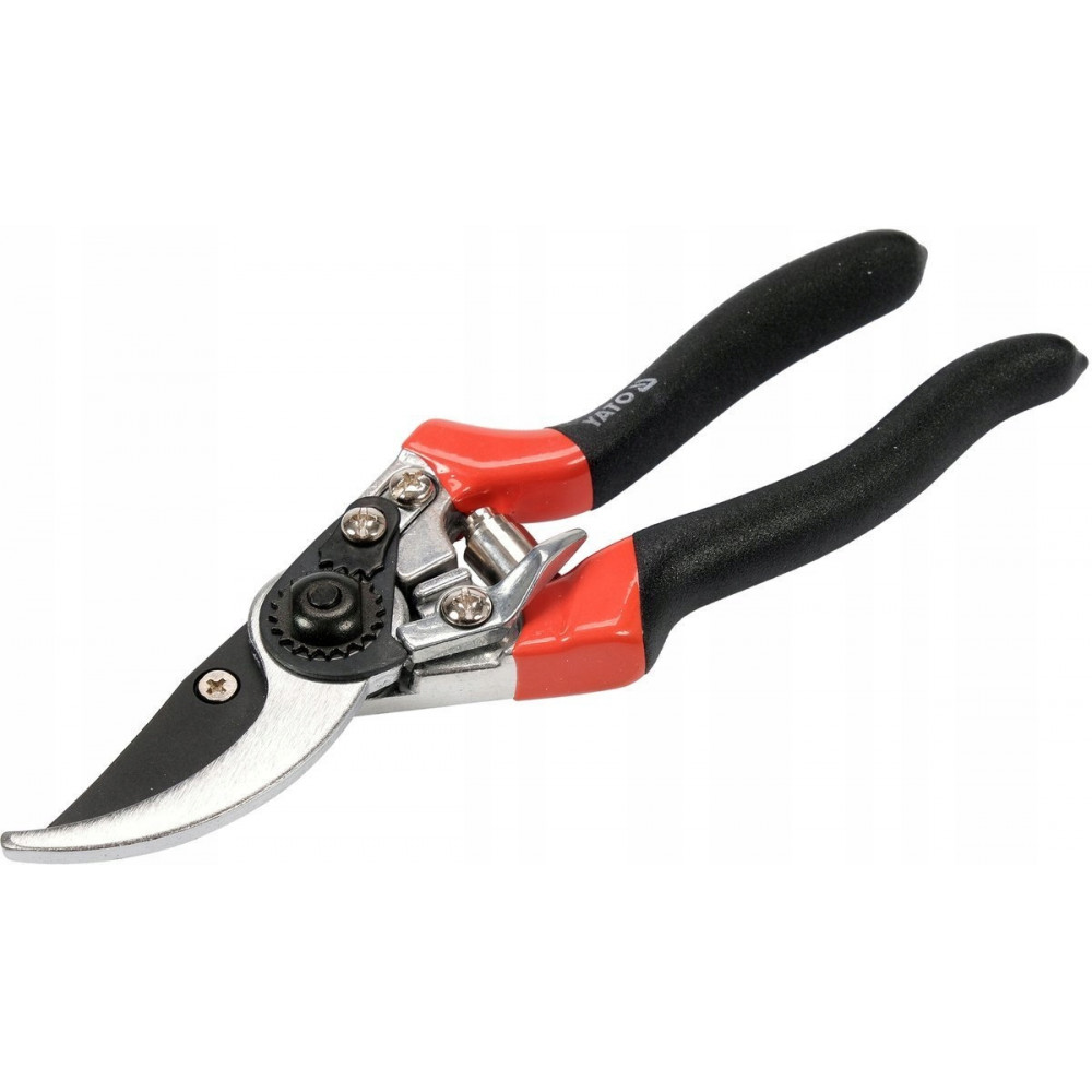 Рукояти секатора имеют соединяющую пружину ленточного типа, которая предотвращает залипание лезвий и гарантирует легкое открытие и закрытие инструмента. Секатор YT-8801 имеет специальный замок для фиксации лезвия в закрытом положении. Этот профессиональный секатор лучше всего использовать для обрезания веток диаметром до 25мм.