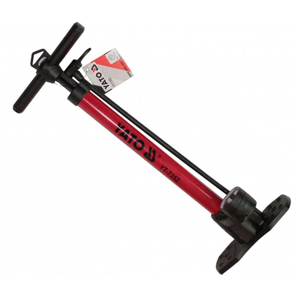 YT-7352 – это ручной насос с манометром от ТМ YATO. Представляет собой простое в применении устройство, дающее возможность быстро подкачать велосипедные, мотоциклетные и автомобильные покрышки.