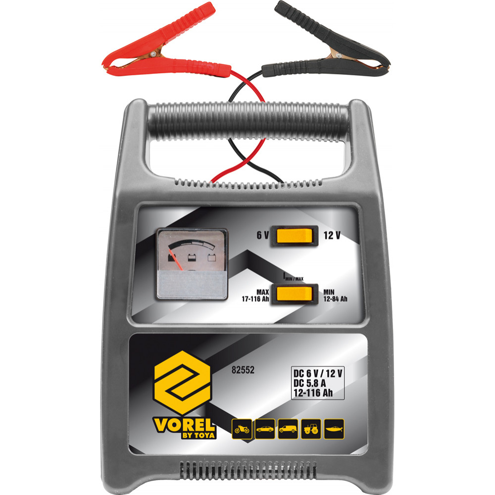 Зарядное устройство 82552 от VOREL представляет собой компактное и очень эффективное устройство для подзарядки автомобильных аккумуляторов.
