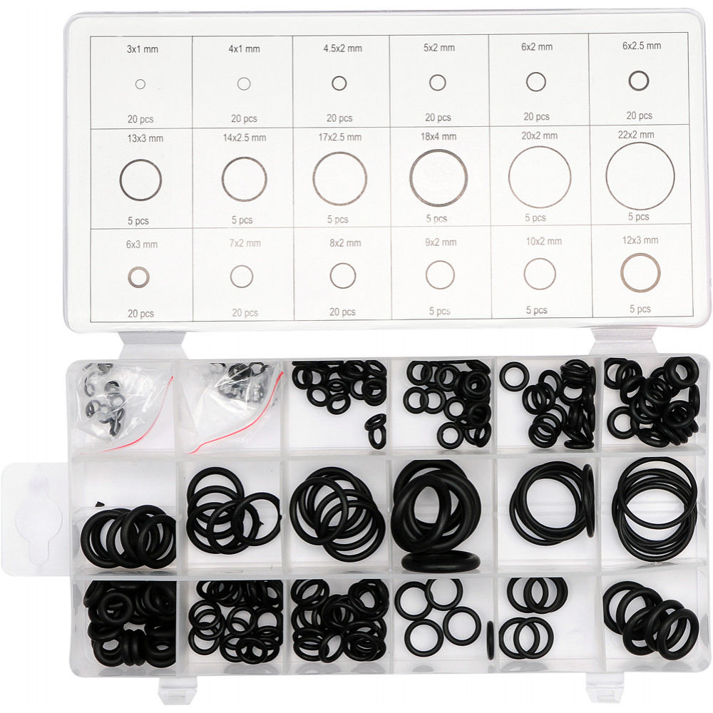 Этот замечательный и полезный набор состоит из 225 уплотнительных колец самых распространенных и востребованных размеров. Уплотнительные кольца являются важнейшей частью автомобильного мотора, коробки передач и других составляющих. С их помощью можно гарантировать герметичность всех зазоров между деталями. Таким образом, можно предотвратить возможное протекание масла или других рабочих жидкостей, применяемых в автомобиле. Обычно эти кольца используются в тех деталях и валах, которые отвечают за возвратно-поступательные движения.