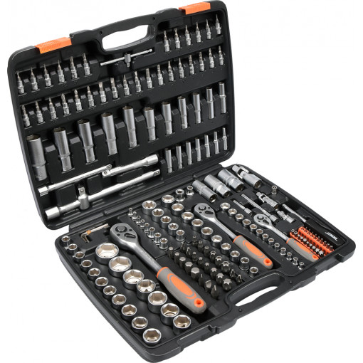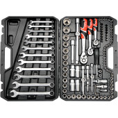 Наборы инструментов 1/4 + 3/8 + 1/2 – это универсальные комплекты с самыми востребованными элементами для работы с резьбовыми соединениями, имеют многофункциональное применение и позволяют грамотно распределить нагрузку и крутящий момент.