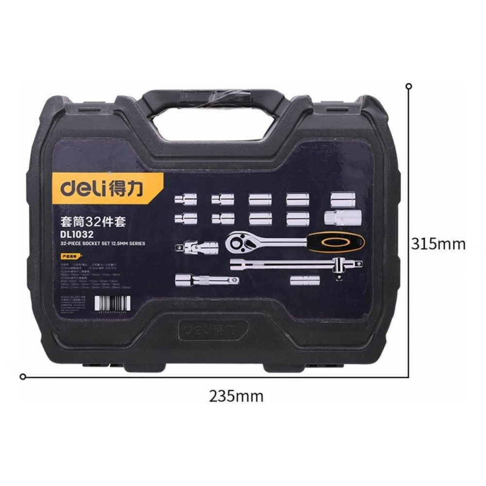 Набор DL1032 торцевых головок и ключей 32шт 1/2", Deli подходят для профессионального использования, так как они обеспечивают высокую производительность и надежность при работе с различными крепежными элементами.