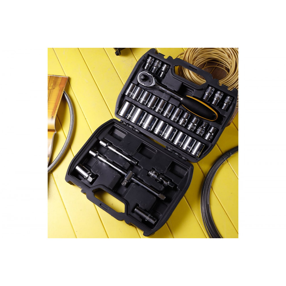 Набор DL1032 торцевых головок и ключей 1/2", Deli включает 32 инструмента, которые подходят для использования с крепежными элементами размером от 8 мм до 32 мм. Изделия изготовлены из прочной и качественной стали, которая обеспечивает надежность и долговечность инструментов. В комплект входят головки различных размеров, а также ключ, который позволяет работать с крепежами разных размеров. Инструменты имеют удобную эргономичную форму, которая способствует комфортному удержанию в руке.