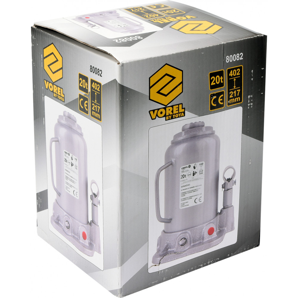 Гидравлический бутылочный домкрат 80082 от VOREL представляет собой специализированное приспособление для подъема больших грузов.