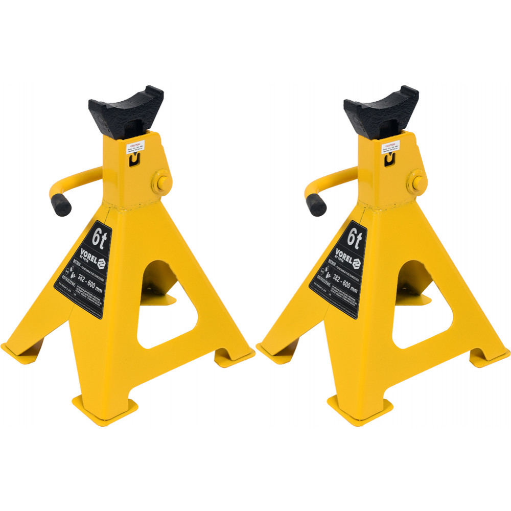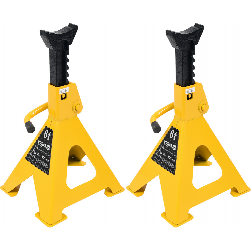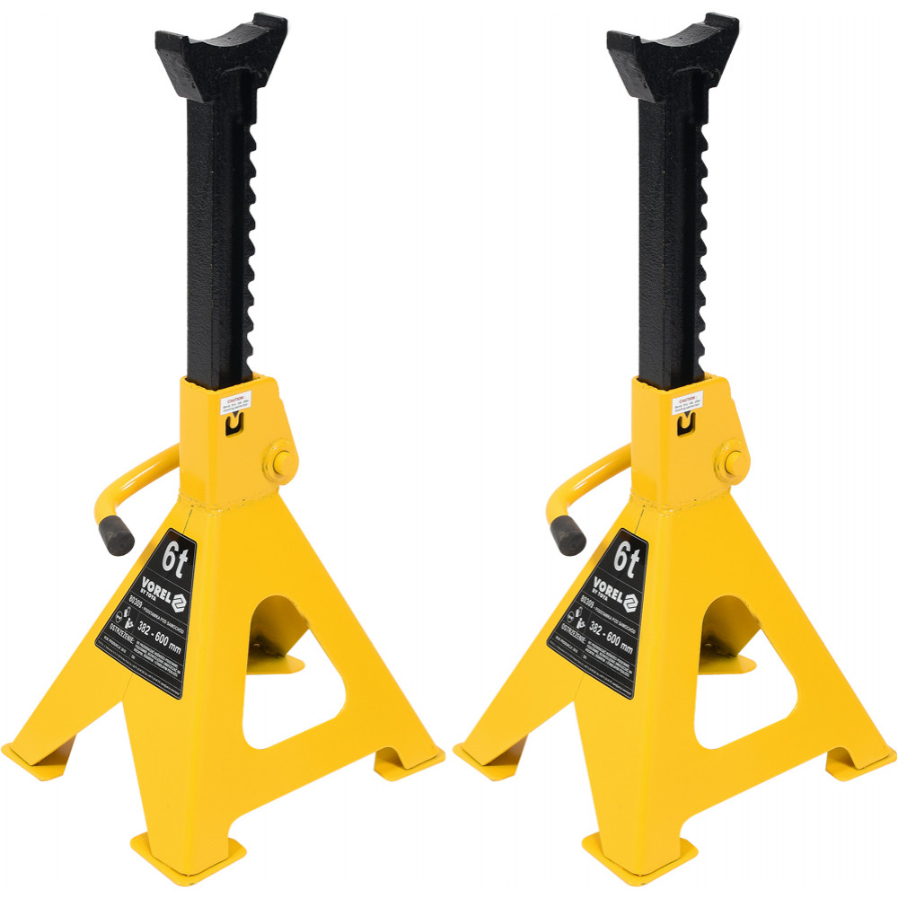 Эти две подставки способны зафиксировать автомобиль на высоте от 382 мм и до 600 мм. Такая удобная регулируемая конструкция позволяет эффективно применять эти подставки в сочетании с другими домкратами.