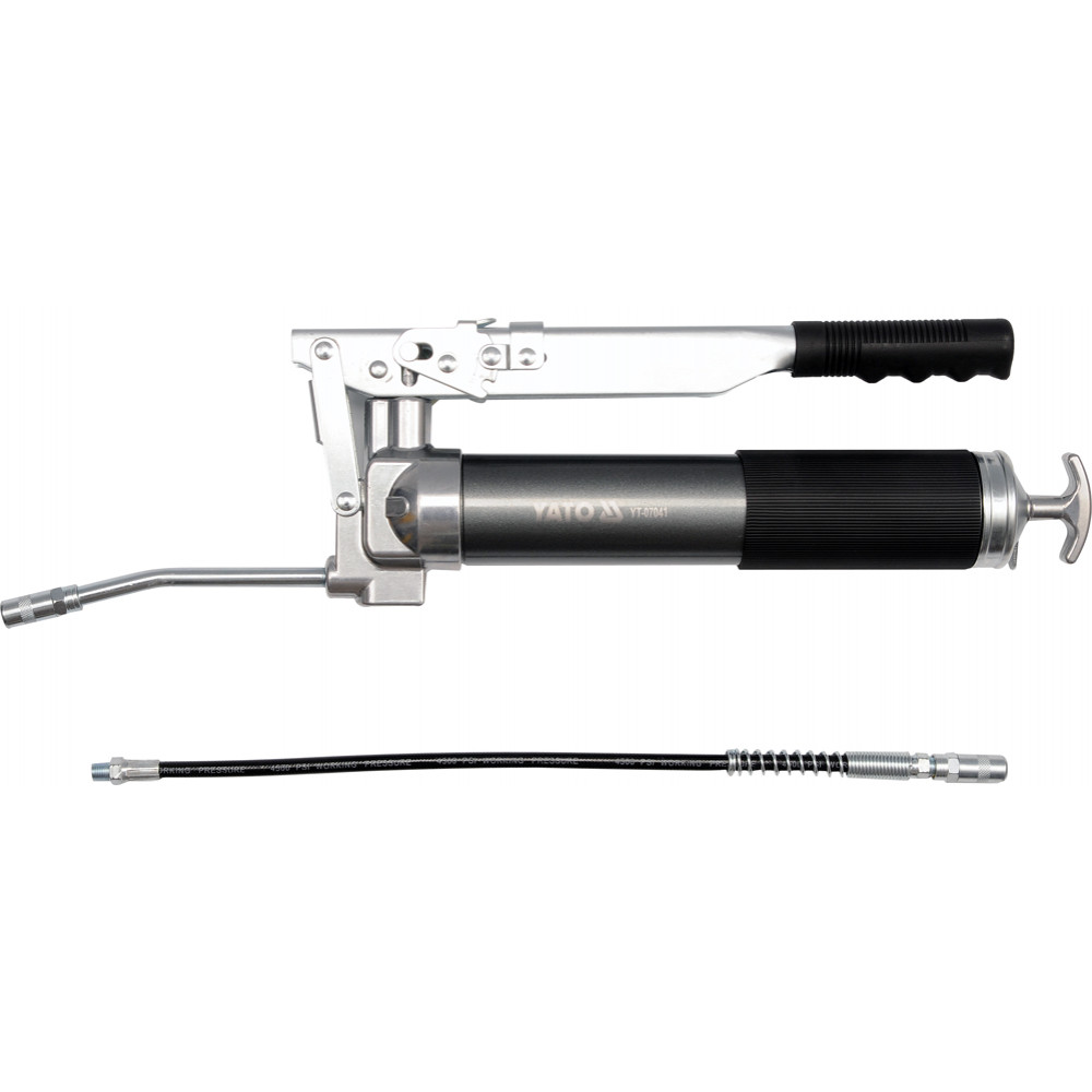 Шприц YT-07041 рассчитан на объем смазочного материала в 500мл и обладает хорошей производительностью.