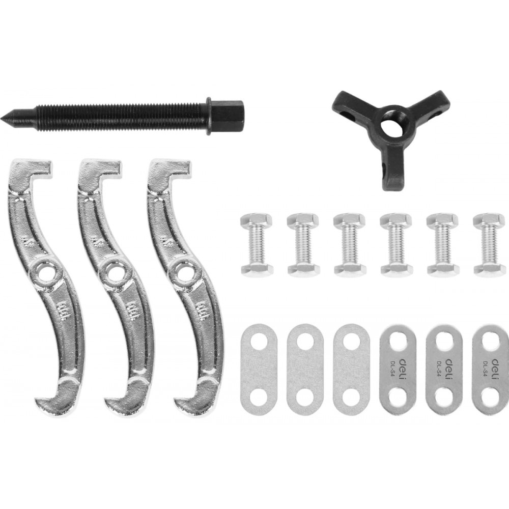 Съемник DL-S4 подшипников трехзахватный 100мм, Deli - это надежный и удобный инструмент для снятия подшипников размером до 100 мм. Этот трехзахватный съемник имеет прочную конструкцию, которая позволяет легко и безопасно снимать подшипники с вала или других деталей.