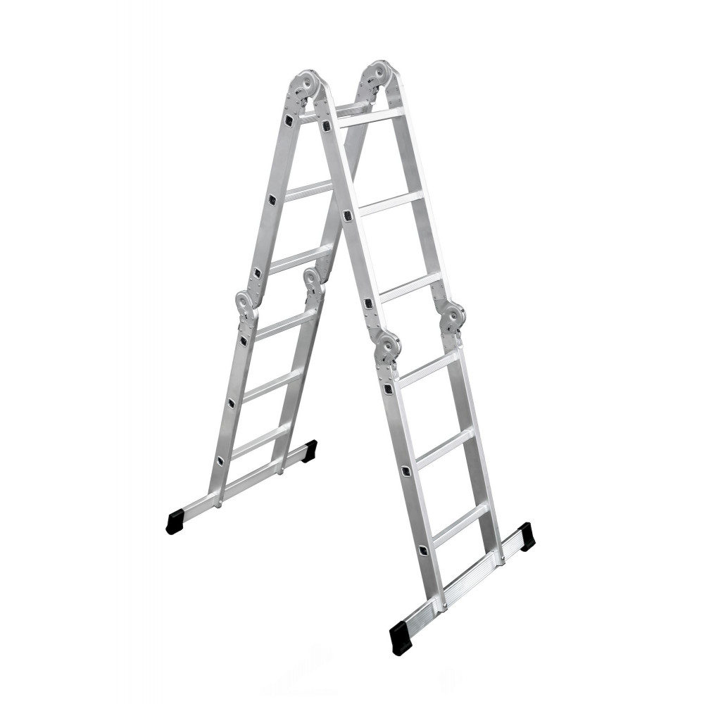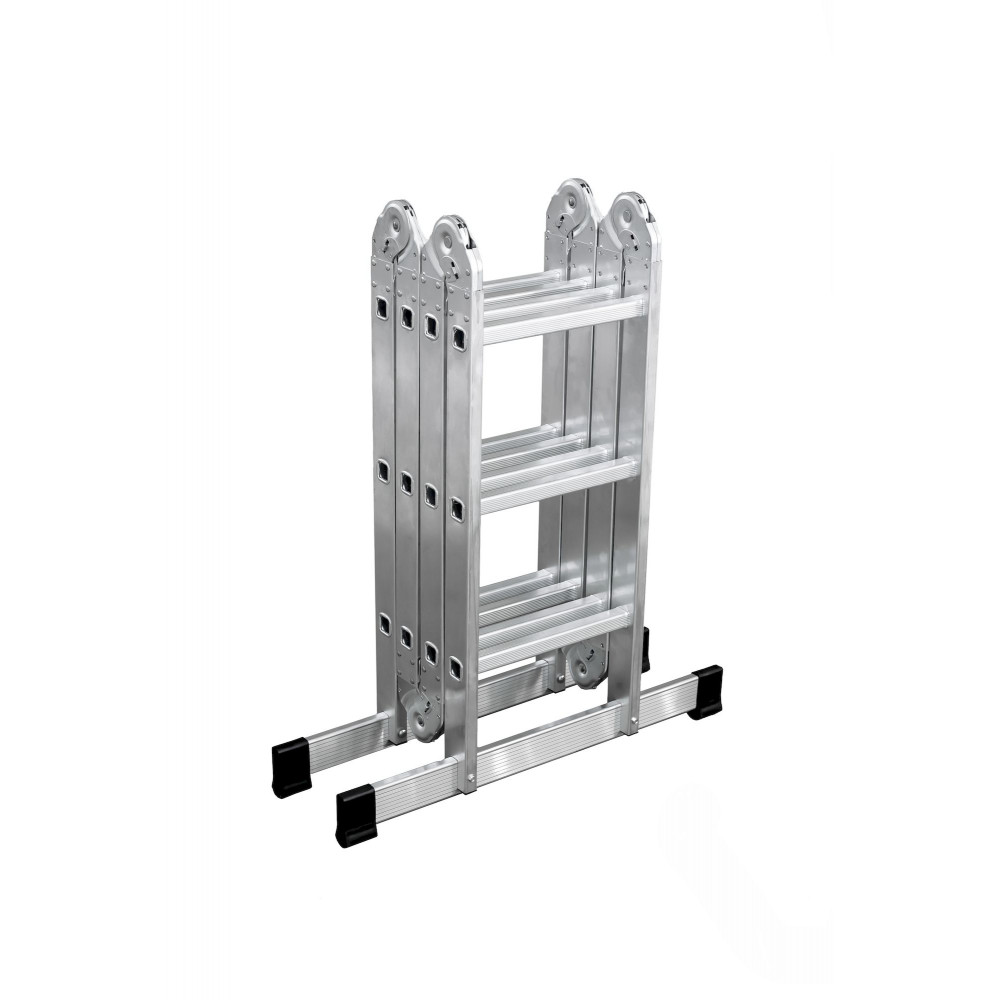 Четырехсекционная шарнирная алюминиевая лестница трансформер UFUK 4х3 изготавливается из высокопрочного алюминиевого профиля прямоугольного сечения. Данная модель представляет собой 4 секции по 3 ступени. Секции соединены между собой стальными шарнирными механизмами, что делает конструкцию многофункциональной и универсальной. Благодаря этим особым соединениям область применения данных изделий значительно расширяется. Можно использовать, как приставную лестницу, стремянку или как рабочую платформу.