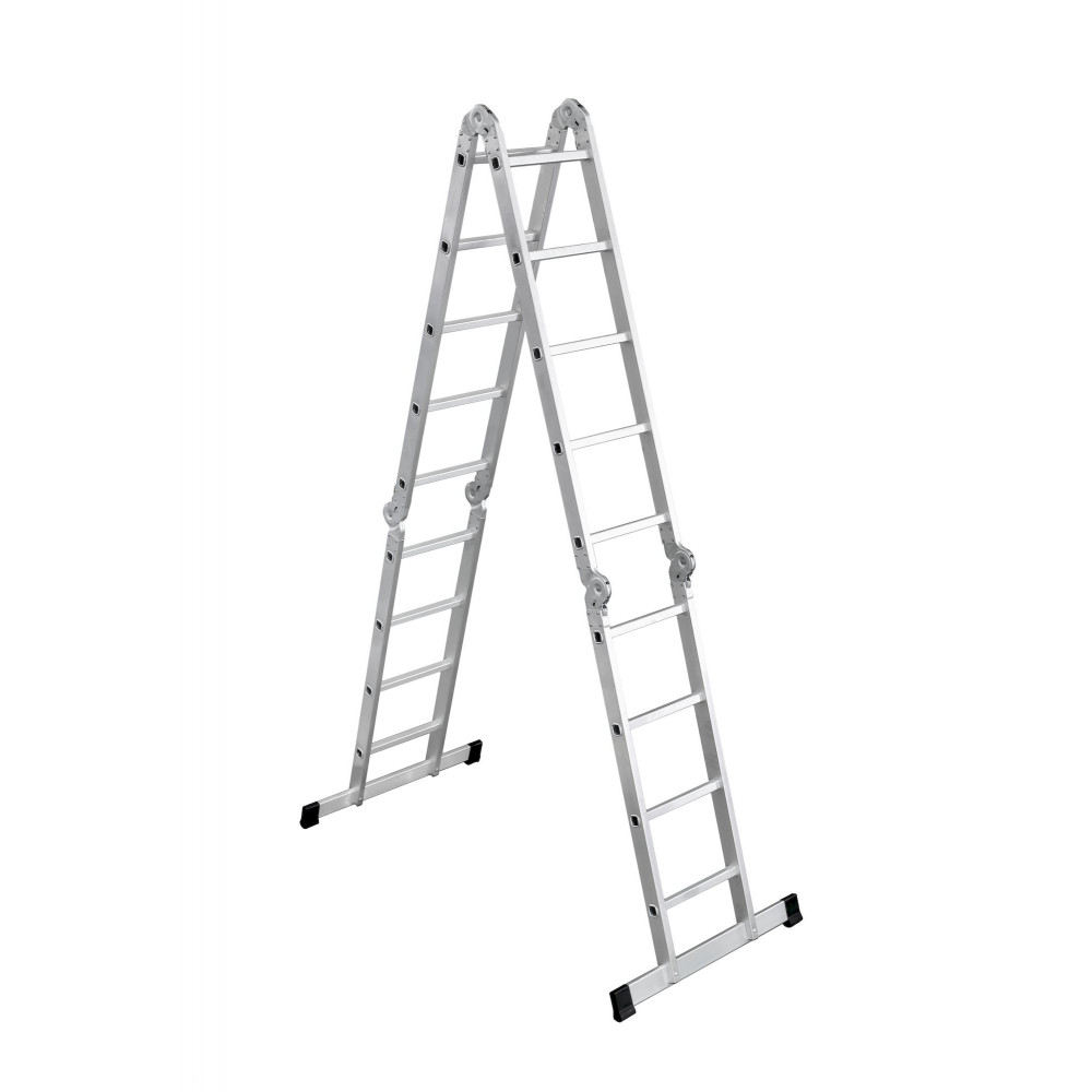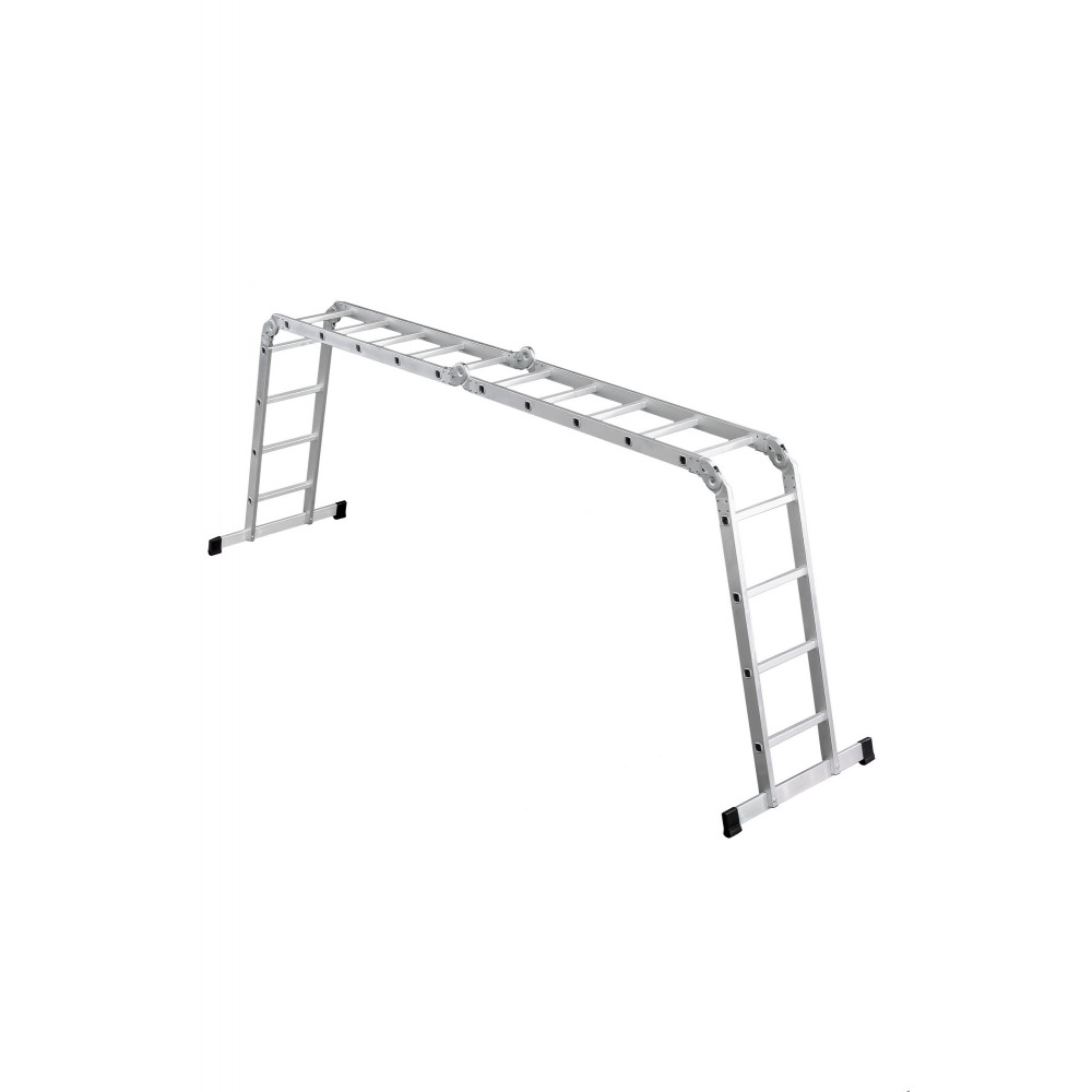 Трансформирующаяся лестница UFUK с четырьмя секциями, две из которых имеют по 5 ступеней, а другие две имеют по 4 ступени, обладает особой конструкцией, которая позволяет использовать эту модель в нескольких формах, каждая из которых может пригодиться в той или иной ситуации в процессе проведения всевозможных строительно-монтажных работ. Данная лестница отличается тем, что каждая ее секция соединена с другими посредством специальных металлических шарниров, что дает возможность регулировать угол наклона секций и установить лестницу в разных режимах, например как: