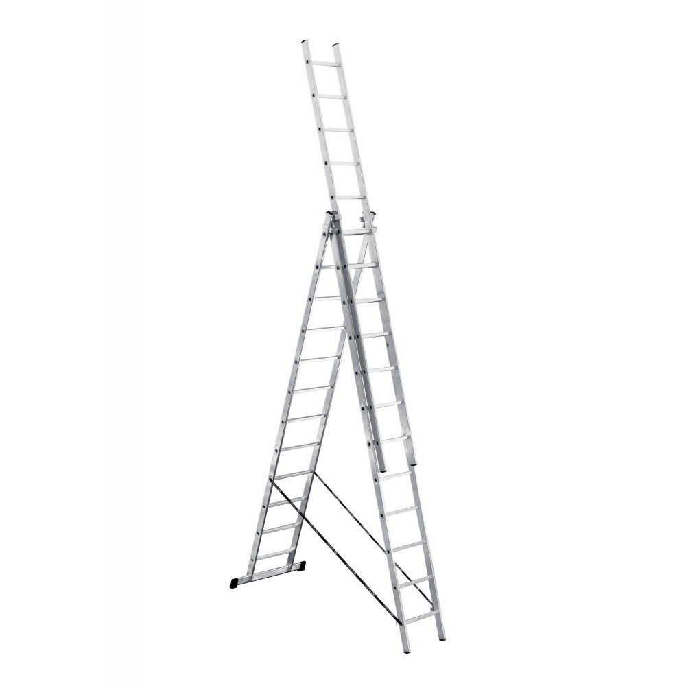 Алюминиевая трехсекционная лестница UFUK модель 4311 – 3x11, изготовлена из прямоугольного алюминиевого профиля толщиной 1,3 мм. Модель представляет собой три секций по 11 ступеней в каждой.