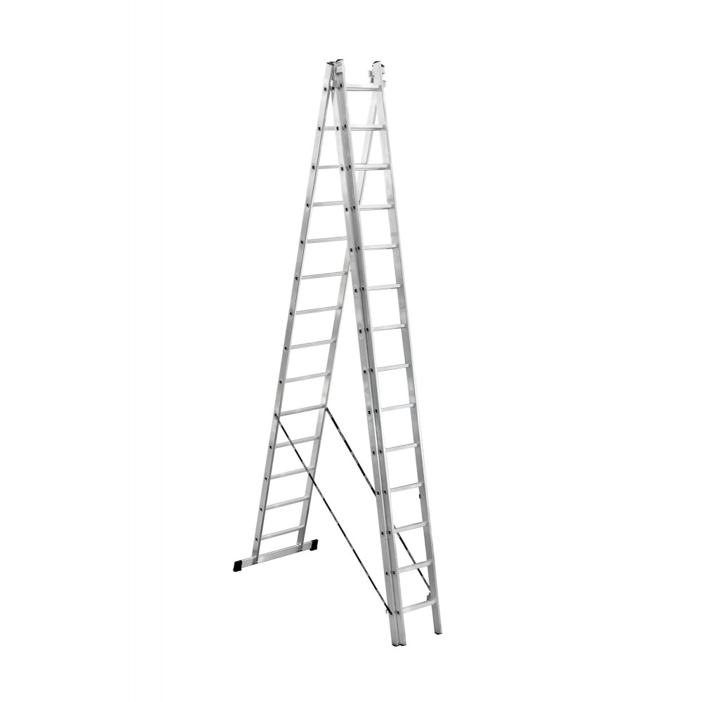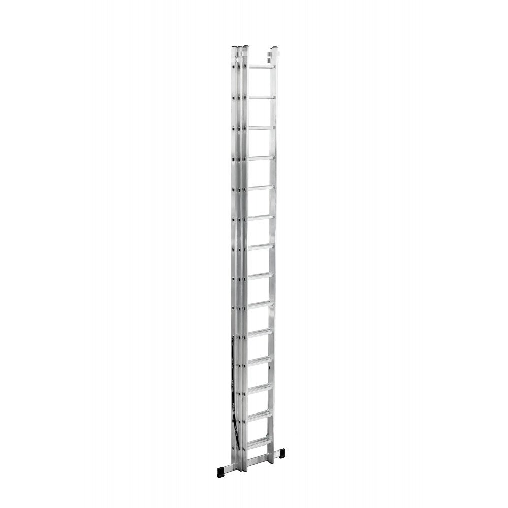Другое дело двух и более секционные лестницы, которые являются более прочными и устойчивыми модификациями обычных лестниц, способными выдерживать очень значительные нагрузки. Эти лестницы широко распространены среди профессионалов. Главным плюсом их конструкции является возможность выдвигать их на большое расстояние при помощи специальной телескопической системы. Это одновременно помогает осуществлять необходимые высотные работы и в то же время обеспечивает компактность лестницы при ее транспортировке. Секции этой лестницы соединены между собой особыми замками, которые играют роль фиксаторов. Чтобы надежно удерживать на поверхности, лестница оборудована специальными траверсами – дополнительными планками большой ширины, которые отлично предотвращают скольжение благодаря пластиковым заглушкам.