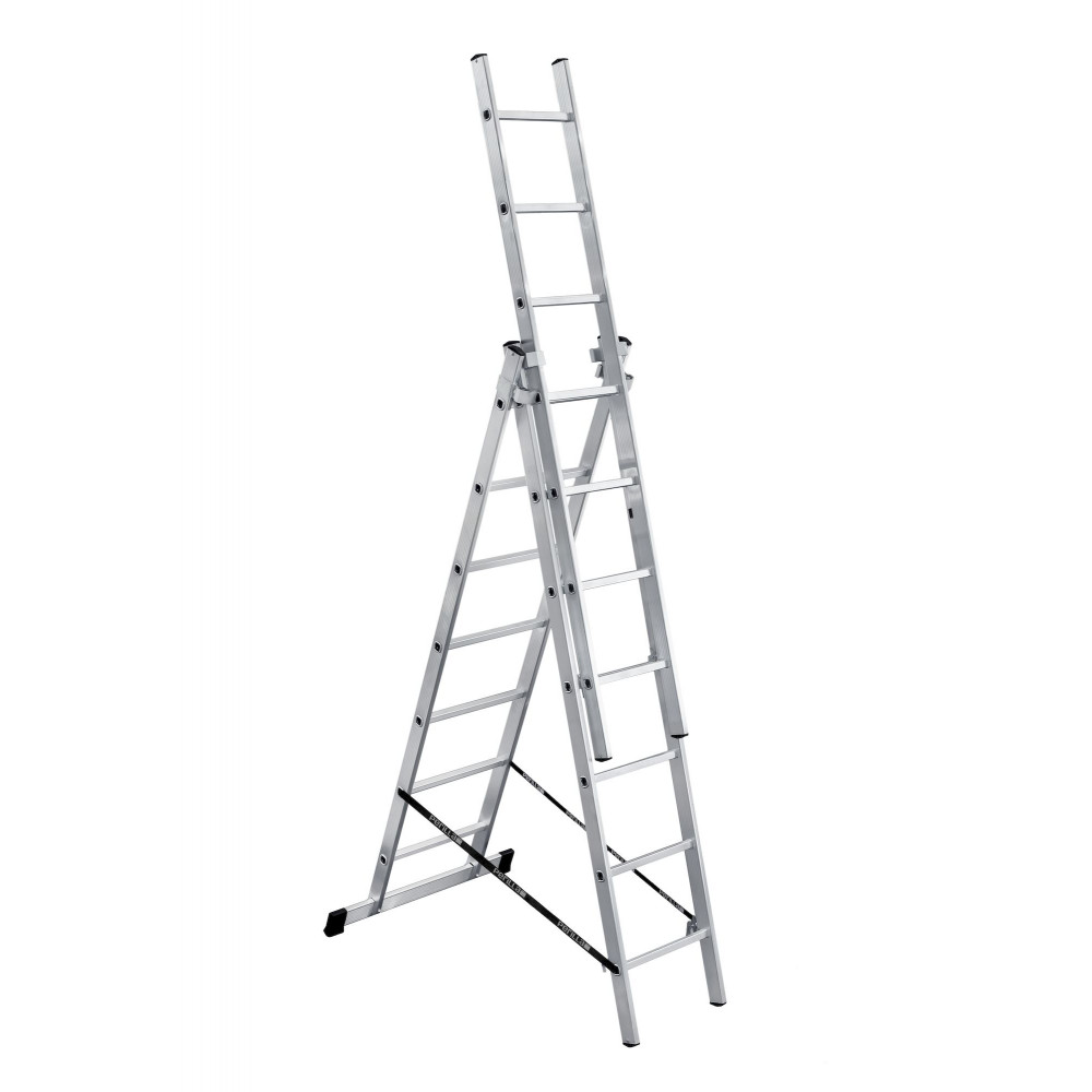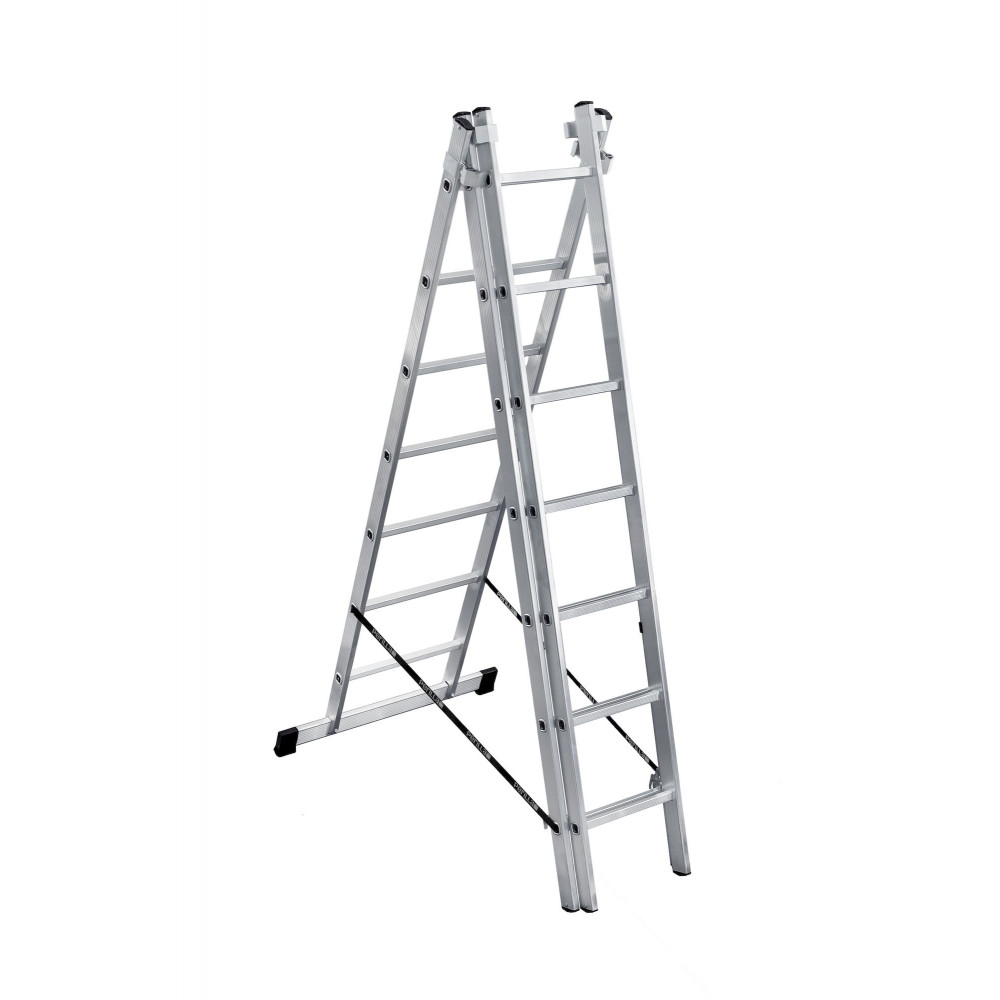 Другое дело двух и более секционные лестницы, которые являются более прочными и устойчивыми модификациями обычных лестниц, способными выдерживать очень значительные нагрузки. Эти лестницы широко распространены среди профессионалов. Главным плюсом их конструкции является возможность выдвигать их на большое расстояние при помощи специальной телескопической системы. Это одновременно помогает осуществлять необходимые высотные работы и в то же время обеспечивает компактность лестницы при ее транспортировке. Секции этой лестницы соединены между собой особыми замками, которые играют роль фиксаторов. Чтобы надежно удерживать на поверхности, лестница оборудована специальными траверсами – дополнительными планками большой ширины, которые отлично предотвращают скольжение благодаря пластиковым заглушкам.