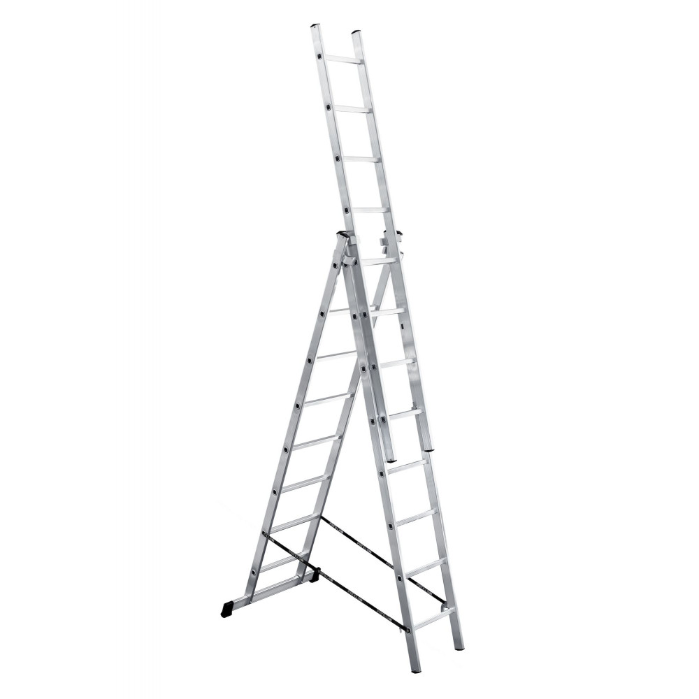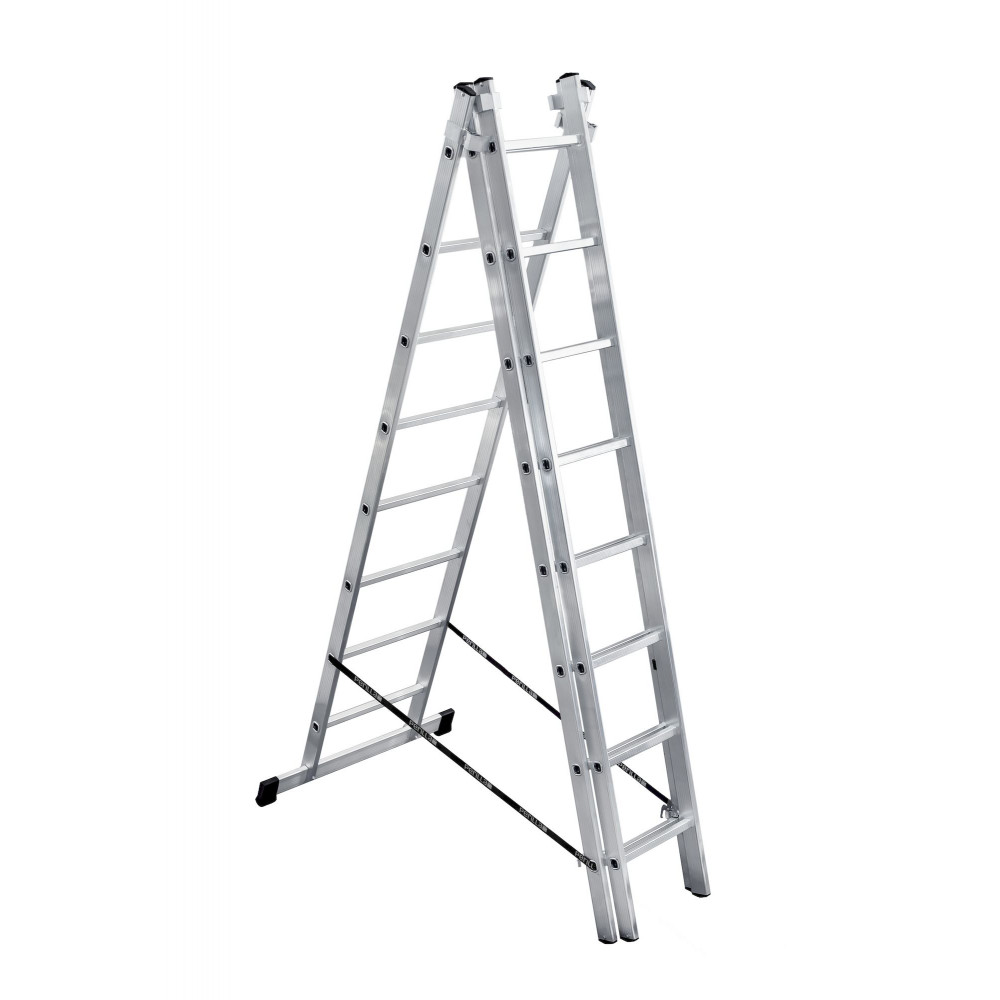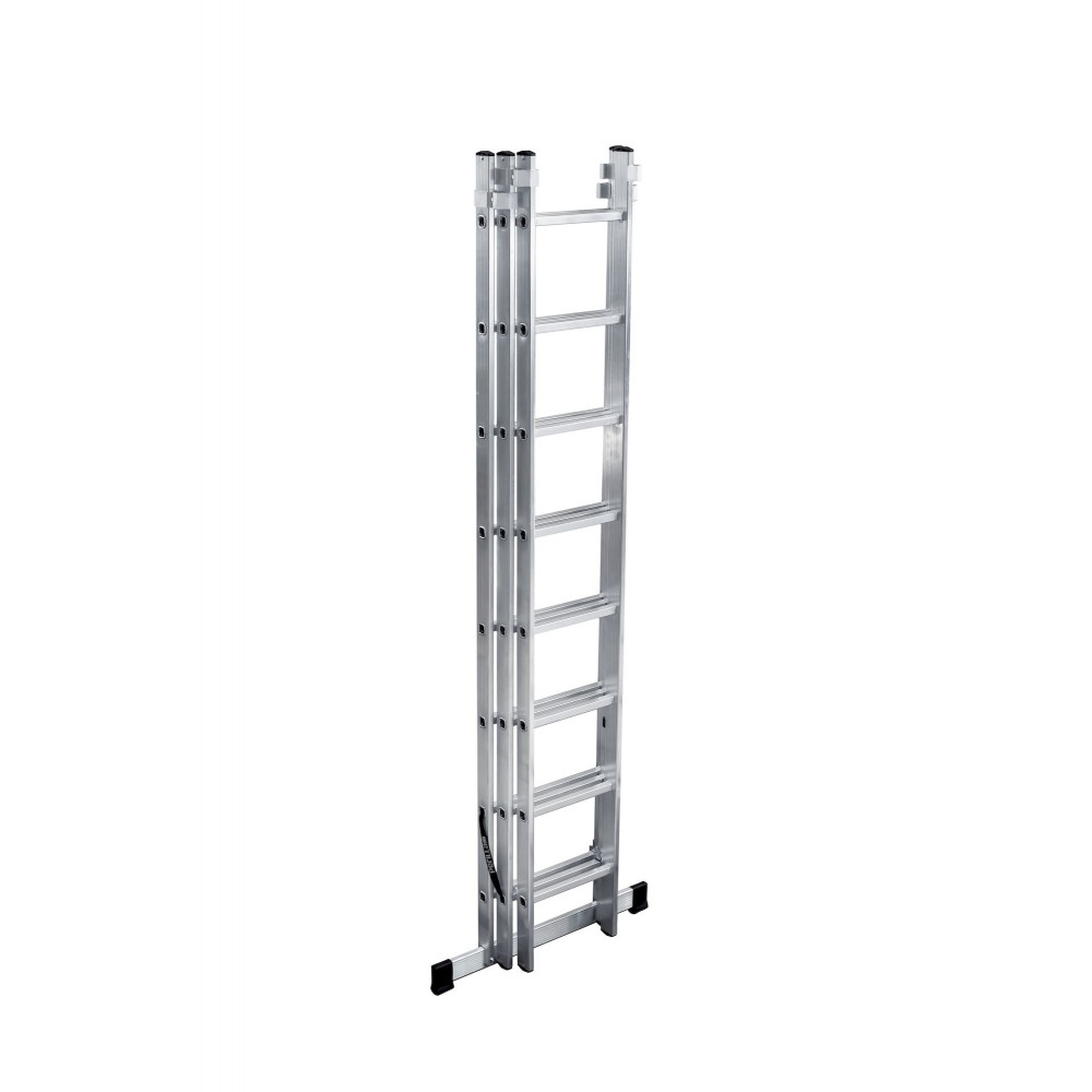 Другое дело двух и более секционные лестницы, которые являются более прочными и устойчивыми модификациями обычных лестниц, способными выдерживать очень значительные нагрузки. Эти лестницы широко распространены среди профессионалов. Главным плюсом их конструкции является возможность выдвигать их на большое расстояние при помощи специальной телескопической системы. Это одновременно помогает осуществлять необходимые высотные работы и в то же время обеспечивает компактность лестницы при ее транспортировке. Секции этой лестницы соединены между собой особыми замками, которые играют роль фиксаторов. Чтобы надежно удерживать на поверхности, лестница оборудована специальными траверсами – дополнительными планками большой ширины, которые отлично предотвращают скольжение благодаря пластиковым заглушкам.