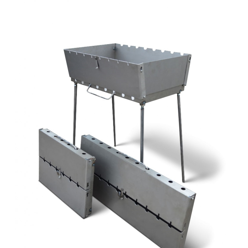 Мангал раскладной – это незаменимая вещь на пикнике, рыбалке и охоте. Изготовлен из жаропрочной листовой стали и рассчитан на 10 шампуров. При толщине стали 2 мм мангал хорошо удерживает жар и не деформируется благодаря усиленной конструкции. Складывается в форму чемодана, что делает его удобным для транспортировки и не займет много места в автомобиле и при хранении.