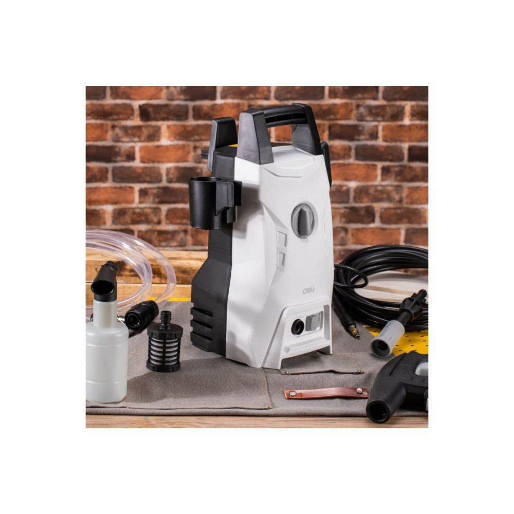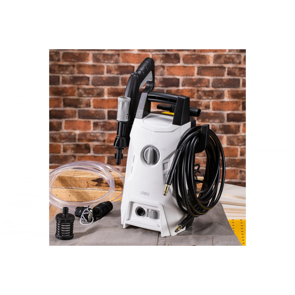 Мойка DL882101 высокого давления 1200Вт, 70бар, 300л/ч Deli это надежный и эффективный инструмент для поддержания чистоты и порядка на вашем приусадебном участке, в гараже или доме. Обладая мощностью 1200 Вт и давлением до 70 бар, эта мойка обеспечивает быструю и качественную очистку различных поверхностей, включая автомобили, фасады зданий, дорожки и многое другое.