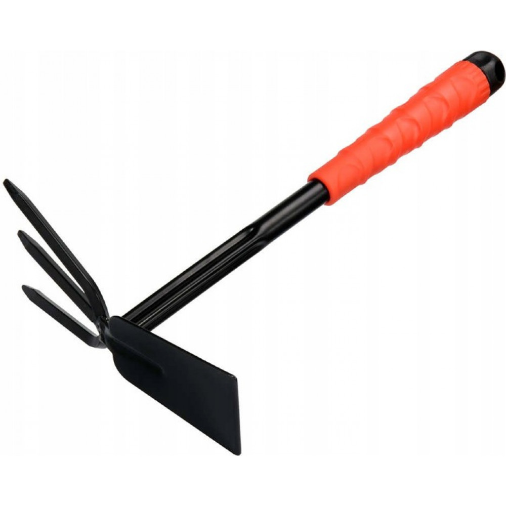 Благодаря своей специальной конструкции, эта мотыга является универсальным инструментом, позволяющим совершать множество садовых операций: разрыхление почвы, прополка, окучивание, создание лунок для семян. Рабочая часть инструмента изготовлена из высококачественной хромированной стали, защищенной от коррозии. С одной стороны мотыги имеется 3 зубца, а другая сторона треугольной формы.