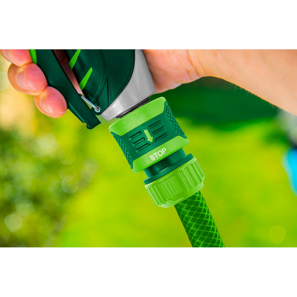 Муфта с автостопом 1/2" - 5/8" 15G731 от VERTO. Быстросъемная муфта изготовлена из высококачественной пластмассы, поэтому этот продукт будет бесперебойно работать в течение длительного времени. Ручка из антискользящей резины обеспечивает удобное обслуживание