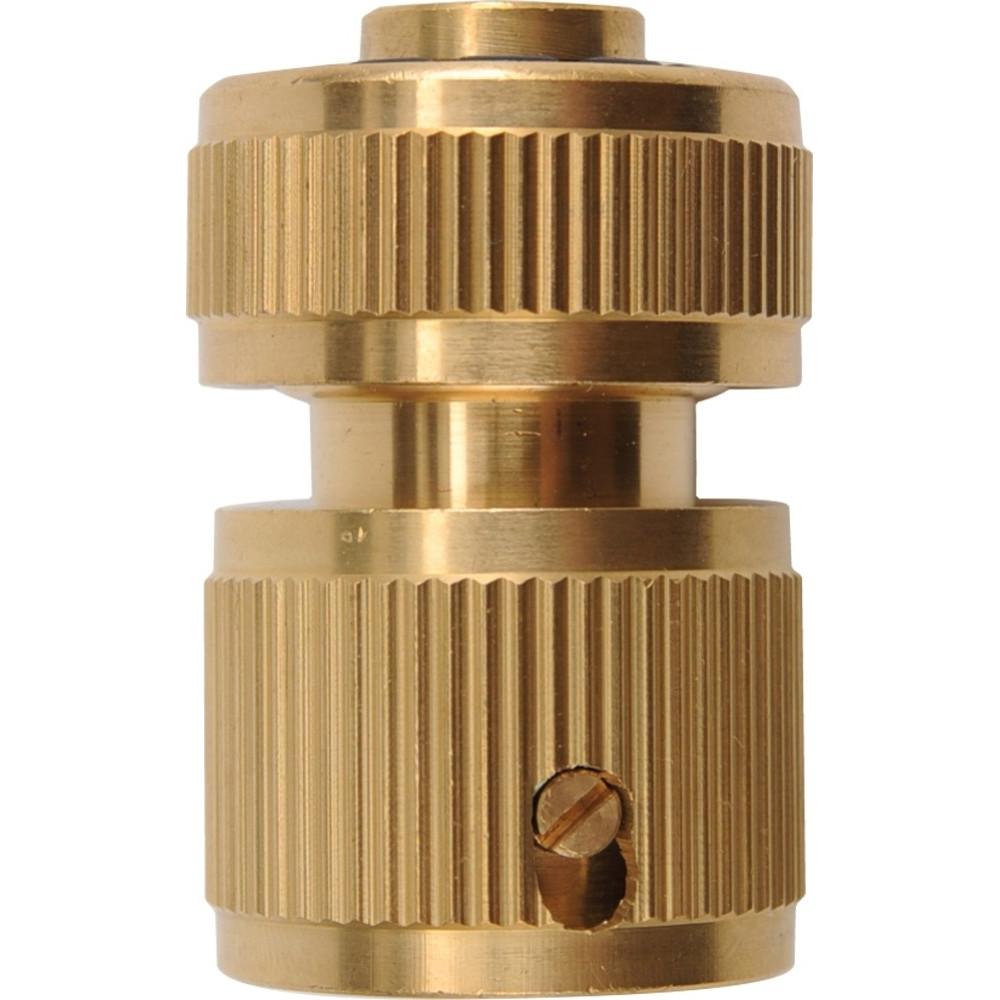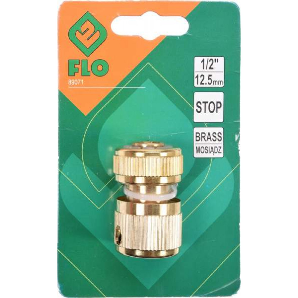 Латунный соединительный шланг-насадка диаметром 1/2 с функцией автостопа от FLO. Этот соединитель используется с поливочными шлангами для их надежного и быстрого соединения со специальной насадкой, тройником или переходником.