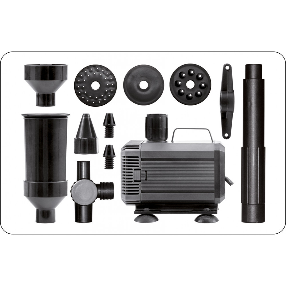 Фонтанный насос 79931 от FLO оснащен особым съемным фильтром, который надежно предотвращает загрязнение внутренней области насоса. Кроме того, в комплекте идут пять специальных насадок разной формы, которые предназначены для формирования определенных декоративных видов потоков воды.