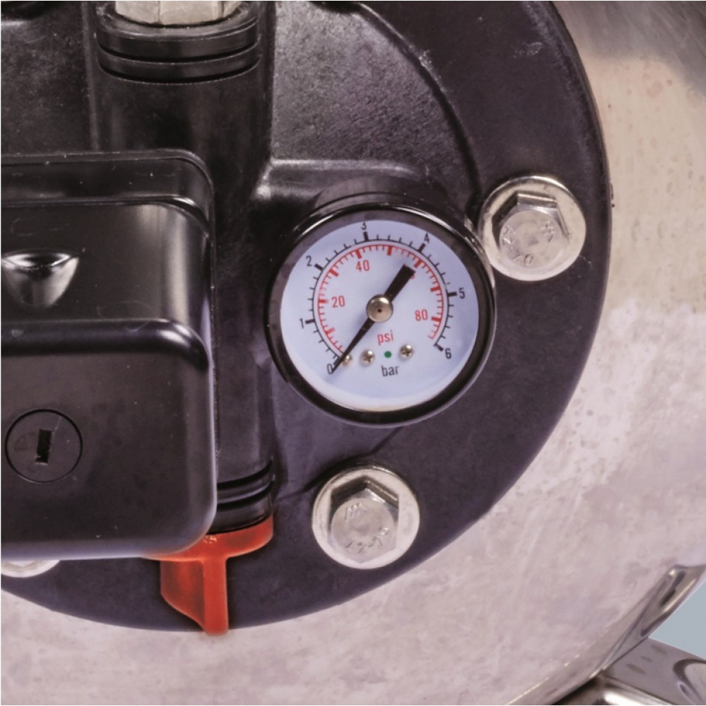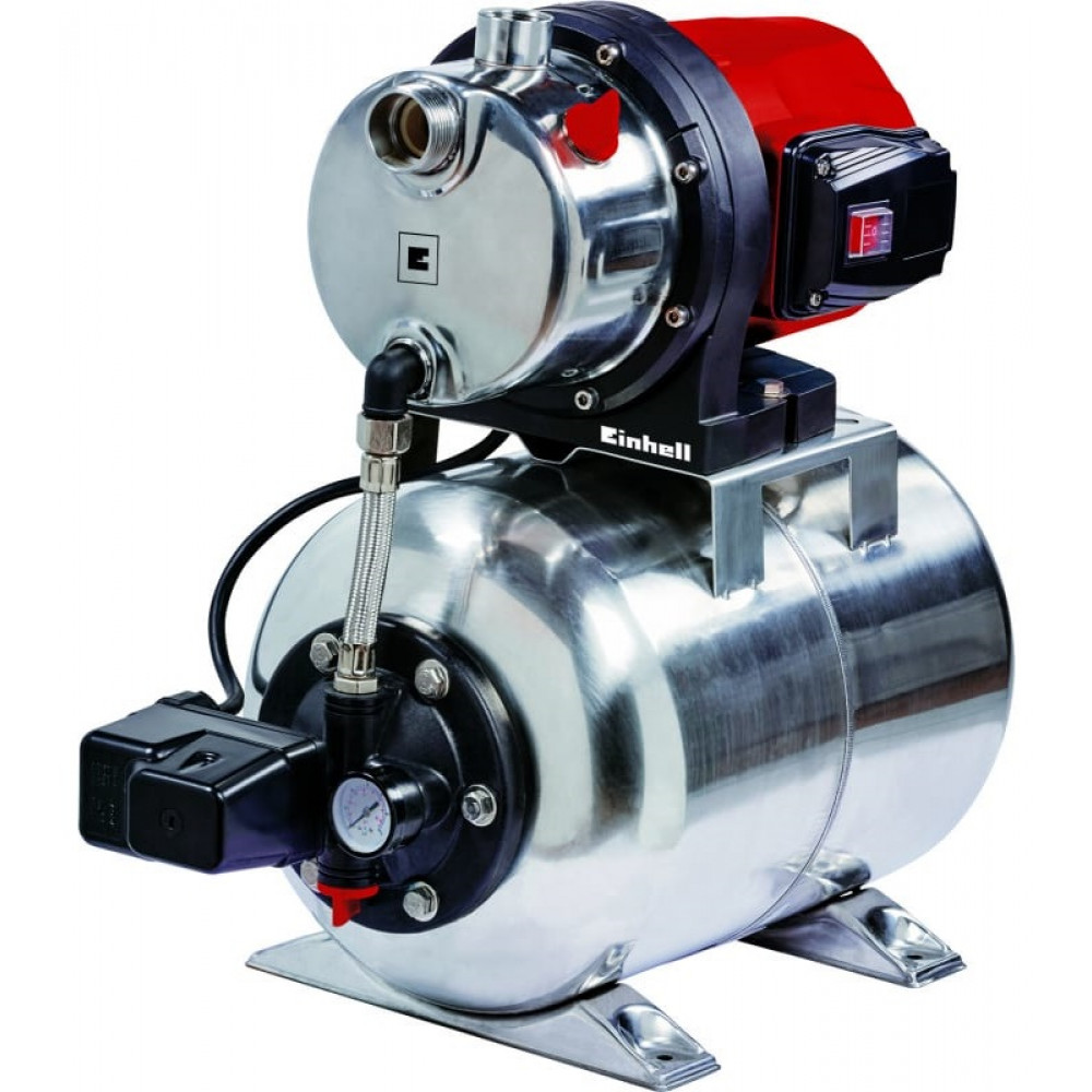 Двигатель мощностью 1200 Вт гарантирует высокую производительность — подача до 5000 литров воды в час! Кроме того, двигатель защищён от перегрузок и не требует дополнительного обслуживания, что значительно упрощает эксплуатацию. Бак из нержавеющей стали объёмом 20 литров оснащён манометром для контроля давления воды в системе.