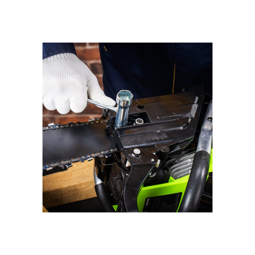 Комментарий: Купил первую в своей жизни пилу, быстро разобраться смог, штудировал просторы интернета, собрал( поставил упор , шину и цепь, натянул цепь), залил масло которое шло в подарок, так же прочитал и сделал топливную смесь(масло плюс бензин в пропорции как на коробке 25частей бензина /и 1часть масла), установил пилу на ровную поверхность и завёл. Пилит как мне показалось старый ствол груши нормально, по звуку и вибрации в пределах нормы, очень долго за 1 раз не пилил но не напрягает, не тяжёлая, простая как отечественный автопром, комплект, в хорошей коробке идёт инструкция, запасной ремкомплект, чехол на шину, масло в подарок, ключи для сборки-разборки.Обращайте на кнопку, первый раз проворачиваете стартер в положении выключено 1 раз, затем переводите кнопку в состояние ВКЛ и заводите, сильно не надо дёргать, заводится и так нормально.