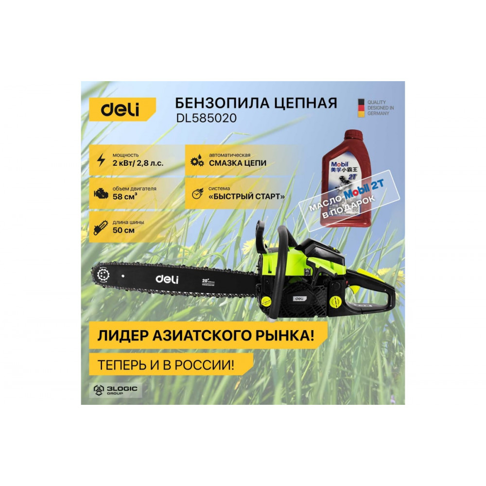 Бензопила DL585020 шина 20" (50 см), 2.0 кВт DELI