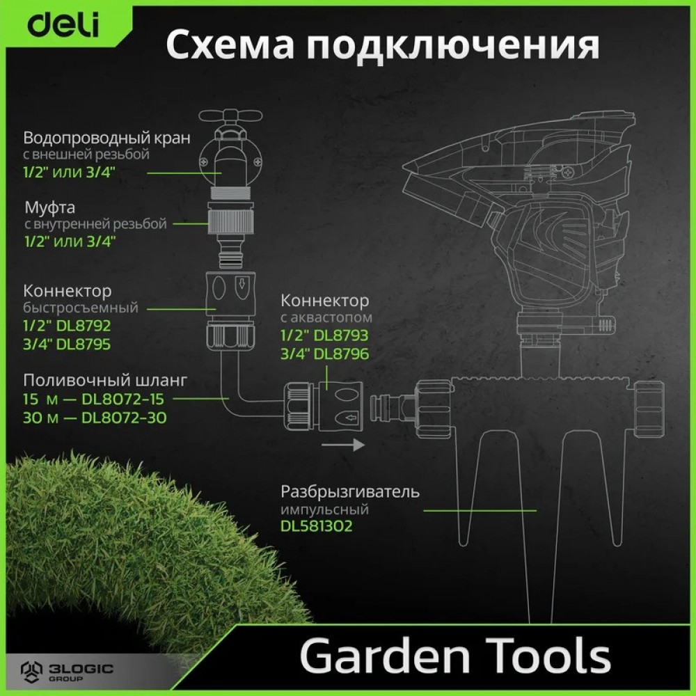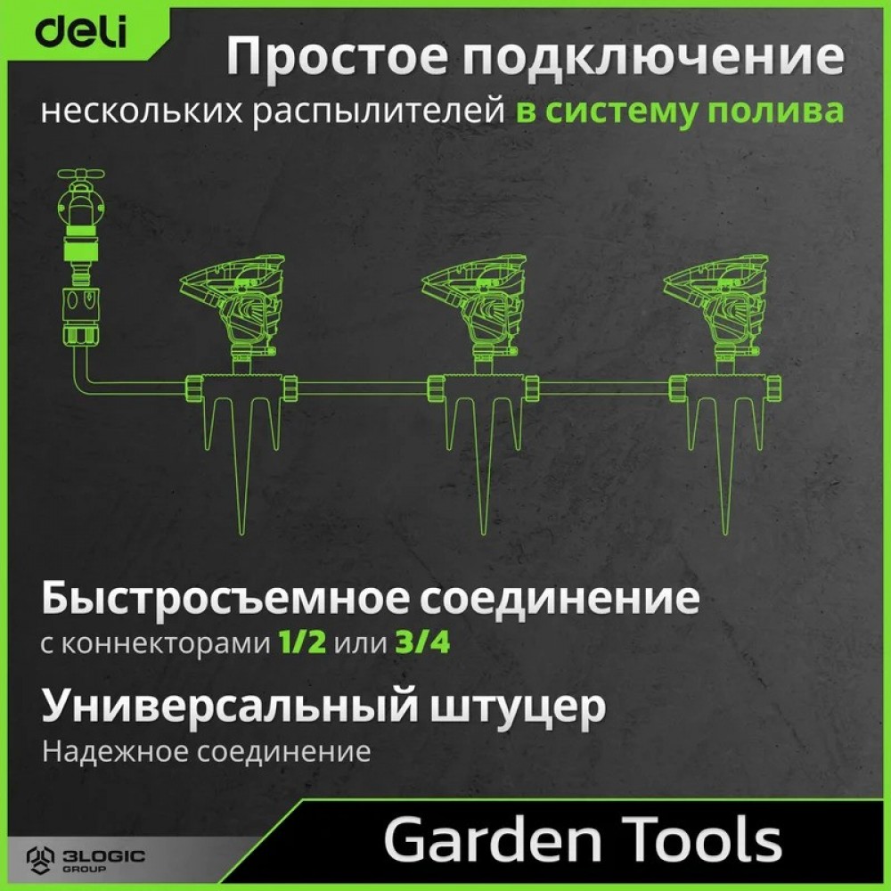 Дождеватель DL581302 разбрызгиватель импульсный на 3-х пиках Deli