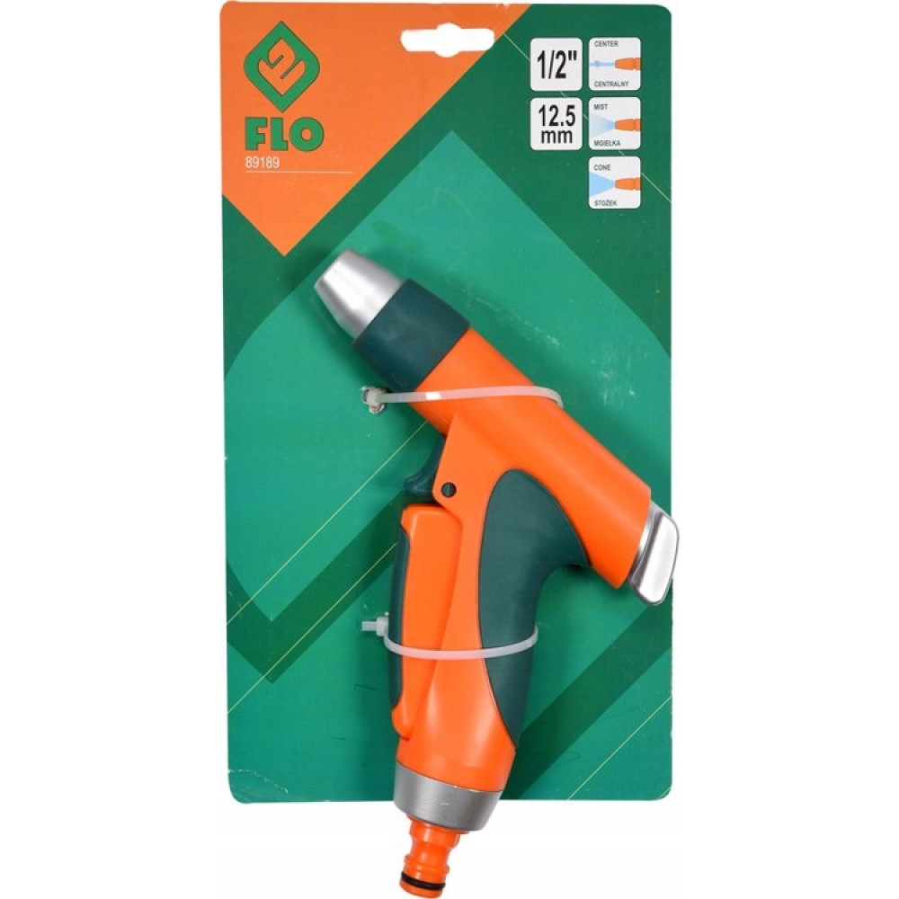 Пистолет 89189 от FLO является специальной насадкой для распыления, которую можно присоединить к шлангам с диаметром 1/2дюйма. Это полезное и надежное приспособление может осуществлять полив территории в трех режимах, которые можно менять по мере необходимости благодаря очень плавной регулировке. Специальный фиксатор помогает удерживать курок пистолета в процессе долгой работы, тем самым значительно экономя силы пользователя.
