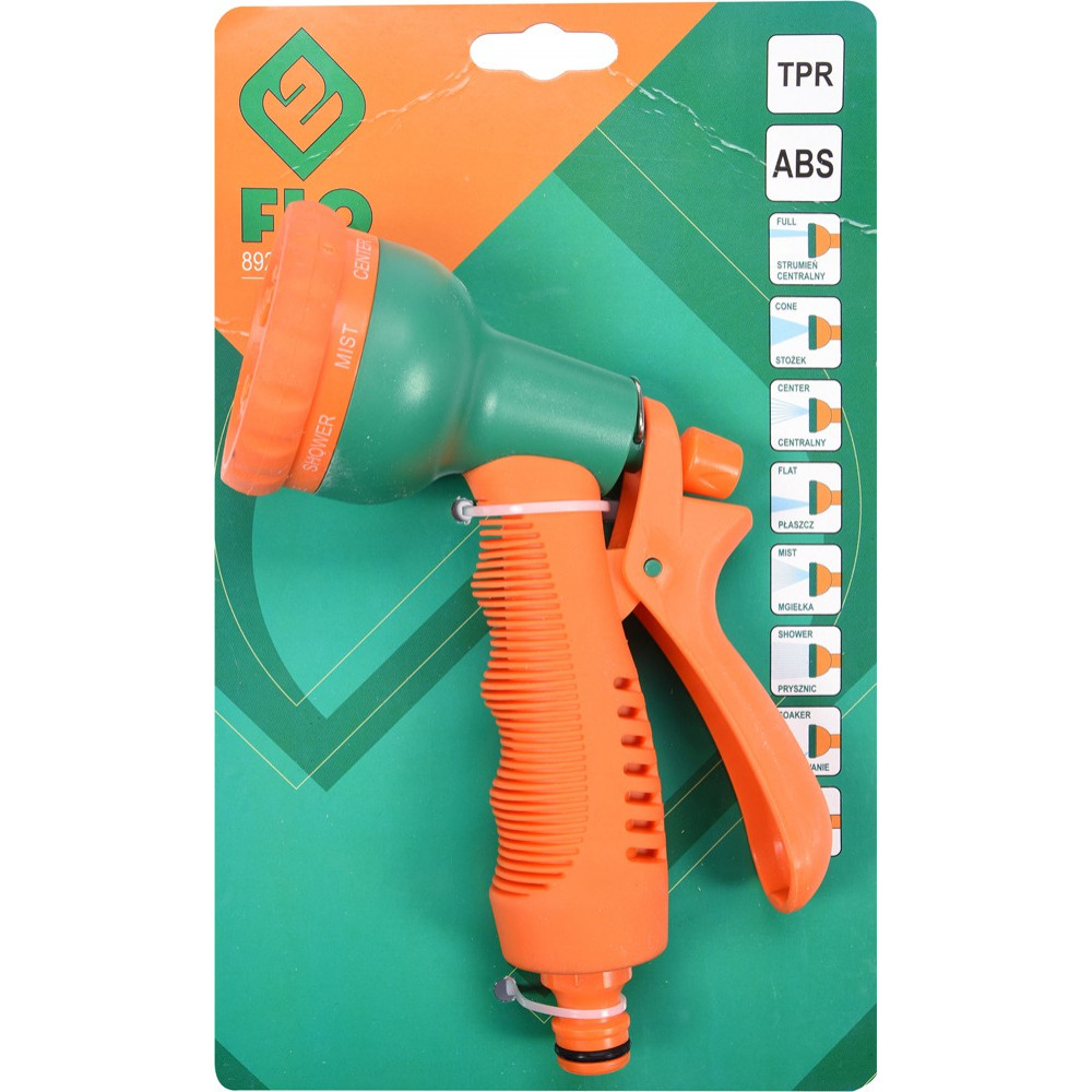 Пистолет-распылитель 89211 от FLO представляет собой удобное и практичное многофункциональное приспособление для осуществления садовых оросительных работ. Этот распылитель легко устанавливается на любые шланги или источники водоснабжения и обладает функцией регулирования силы потока воды.
