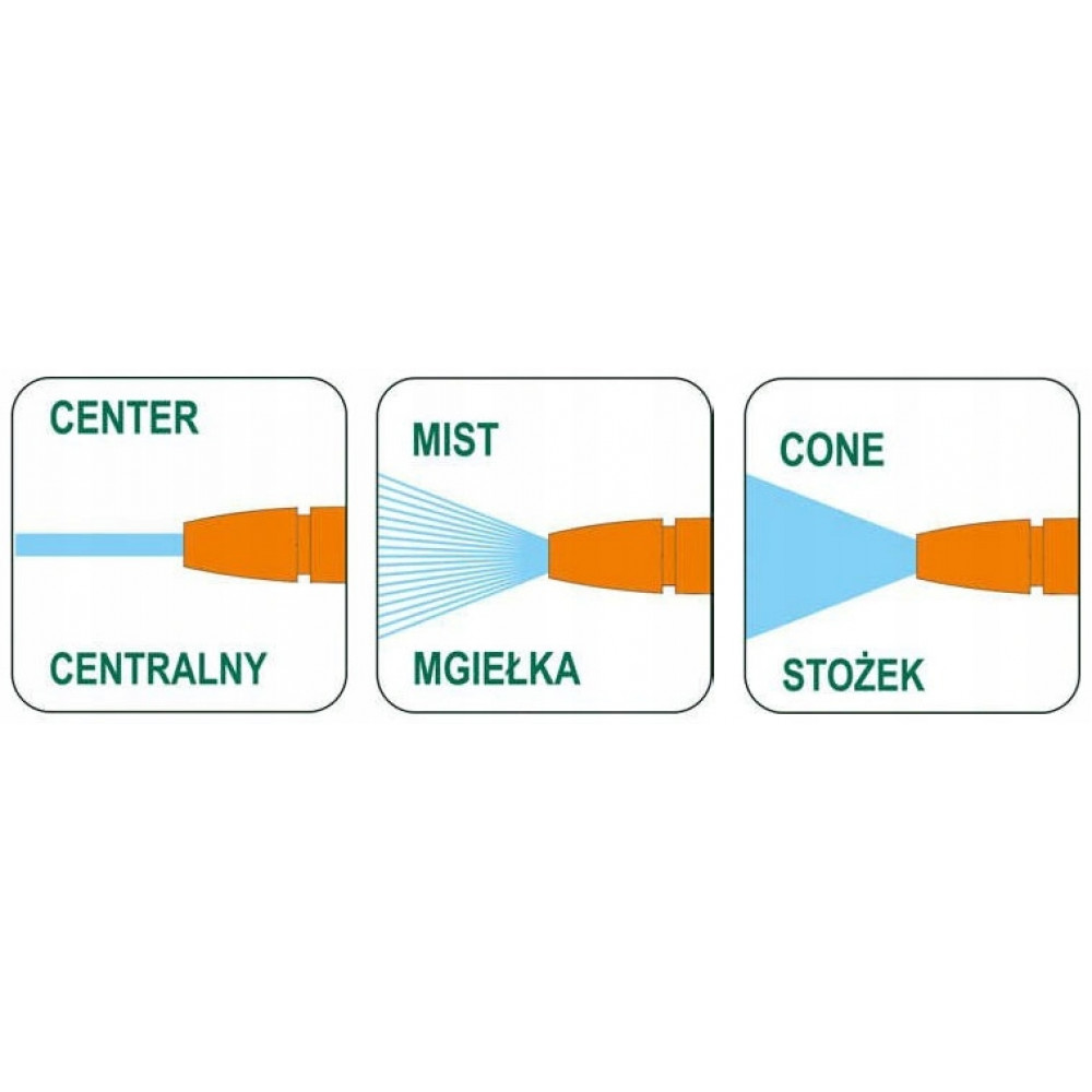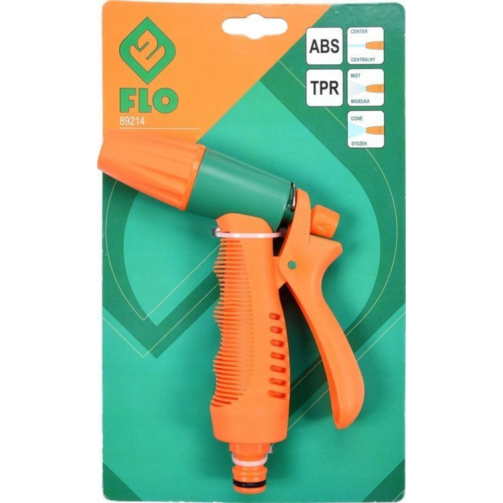 Пистолет-распылитель 89214 от FLO рассчитан на использование 3х режимов полива: центральный поток, туман и конус, каждый из которых может пригодиться в той или иной ситуации. Режимы сменяются плавно и быстро, от простого сильного потока до навесного орошения при помощи мелких капель.