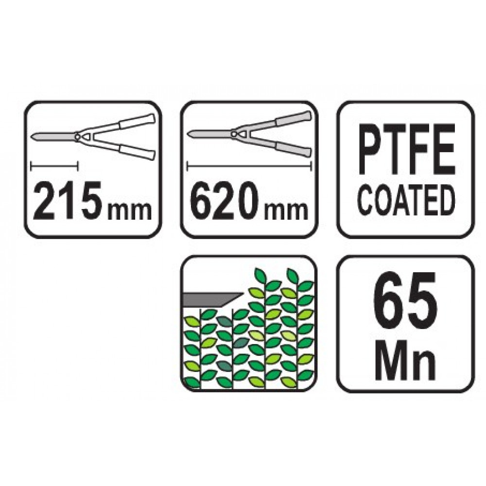 Ручной кусторез 99008 VOREL с волнообразным ножом. Это лезвие предотвращает выпадение веток во время резки. Лезвия обеспечивают высокую стойкость к истиранию. Поверхность лезвий покрыта слоем политетрафторэтилена (ПТФЭ), что увеличивает комфорт работы. Ручки эргономичной формы увеличивают силу резания. Ручки оснащены вешалками для удобного хранения. Длина клинка - 21,5 см, общая длина - 62 см.