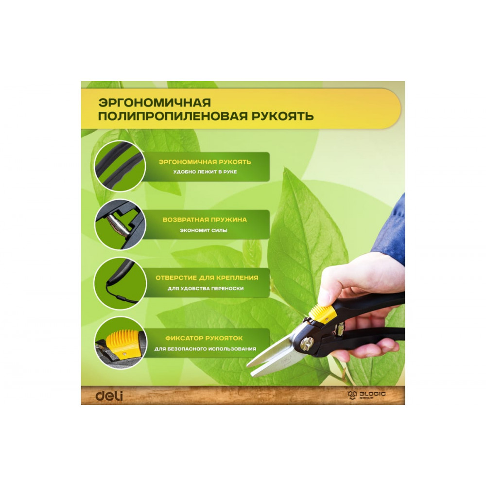 Секатор садовый DL580101, 200мм, Deli - это надежный инструмент, предназначенный для ухода за садом и огородом. Длина секатора составляет 200 мм, что делает его удобным для использования как для правшей, так и для левшей. Благодаря остро заточенным лезвиям из стали 55C, этот секатор обеспечивает качественную и быструю резку веток диаметром до 10 мм.