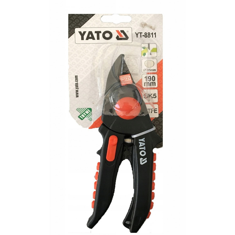 Секатор YT-8811 с тефлоновым лезвием 190 мм, 15 мм YATO