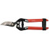 Рукояти секатора выполнены из алюминия и имеют специальное резиновое покрытие для защиты от скольжения рук. Рукояти соединены между собой пружиной ленточного типа, благодаря которой исключается залипание лезвий, а открытие и закрытие происходят плавно. Для фиксации лезвия в закрытом состоянии секатор оснащен специальным замком. Режущее лезвие эффективно работает вместе с нижней пластиной, которая смещена по отношению к линии среза. Это делает процесс обрезания веток более аккуратным, ведь деформируется только отсекаемая часть ветки. Диаметр веток составляет до 15мм.