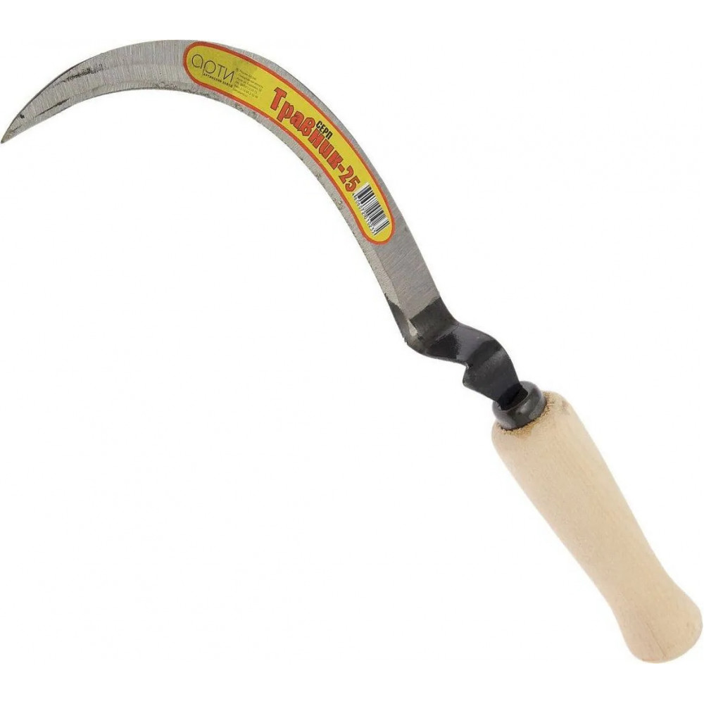 Серп модели Травник №25 от ТМ АРТИ представляет собой удобный ручной инструмент, который идеально приспособлен для сбора травы с определенных участков земли для ее последующей заготовки в качестве корма для домашней живности. Такие серпы очень распространены в сельской местности и в быту.