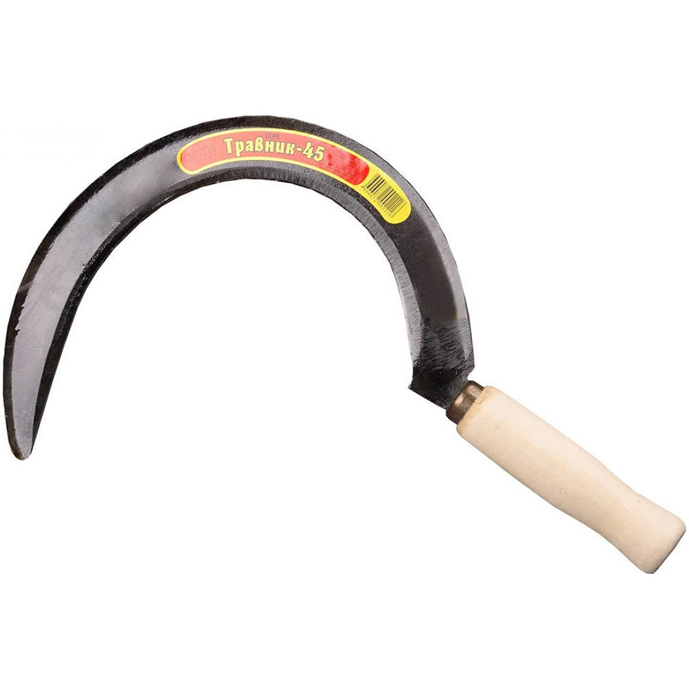 Серп «Травник» предназначен для скашивания травы на дачном участке. Лезвие инструмента выполнено из высококачественного металла, а рукоять — из дерева. Такое сочетание материалов делает данную модель одновременно прочной и лёгкой для работы.