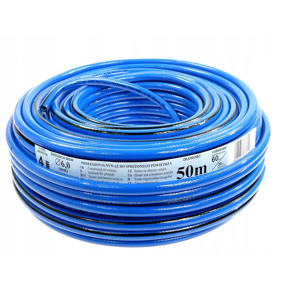 Шланг ПВХ армированный для сжатого воздуха (2 МПа, d-10 мм, L-50 м) 4х-слойный, синий
