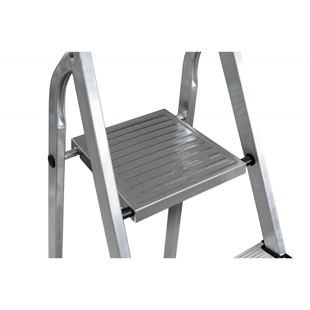 Односторонняя лестница-стремянка Perilla выполнена из прочного и легкого алюминия, и оснащена пятью ступенями. Площадка в верхней части лестницы имеет размеры 20х40 мм, а общий вес равен 3,3 кг. Высота это приспособления составляет 1,1 м, а в сложенном виде данная лестница имеет габариты 180х47,4х11,6 мм. Эта стремянка способна эффективно выдерживать вес до 150 кг.