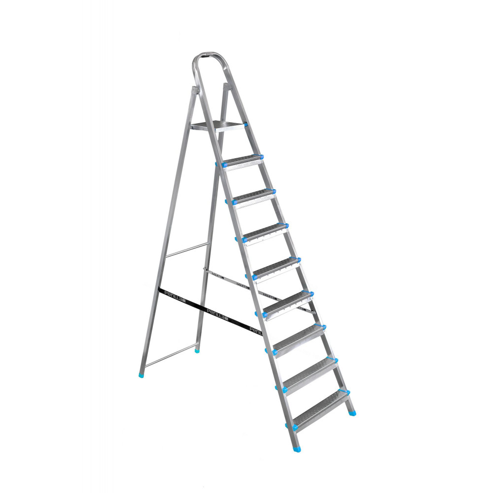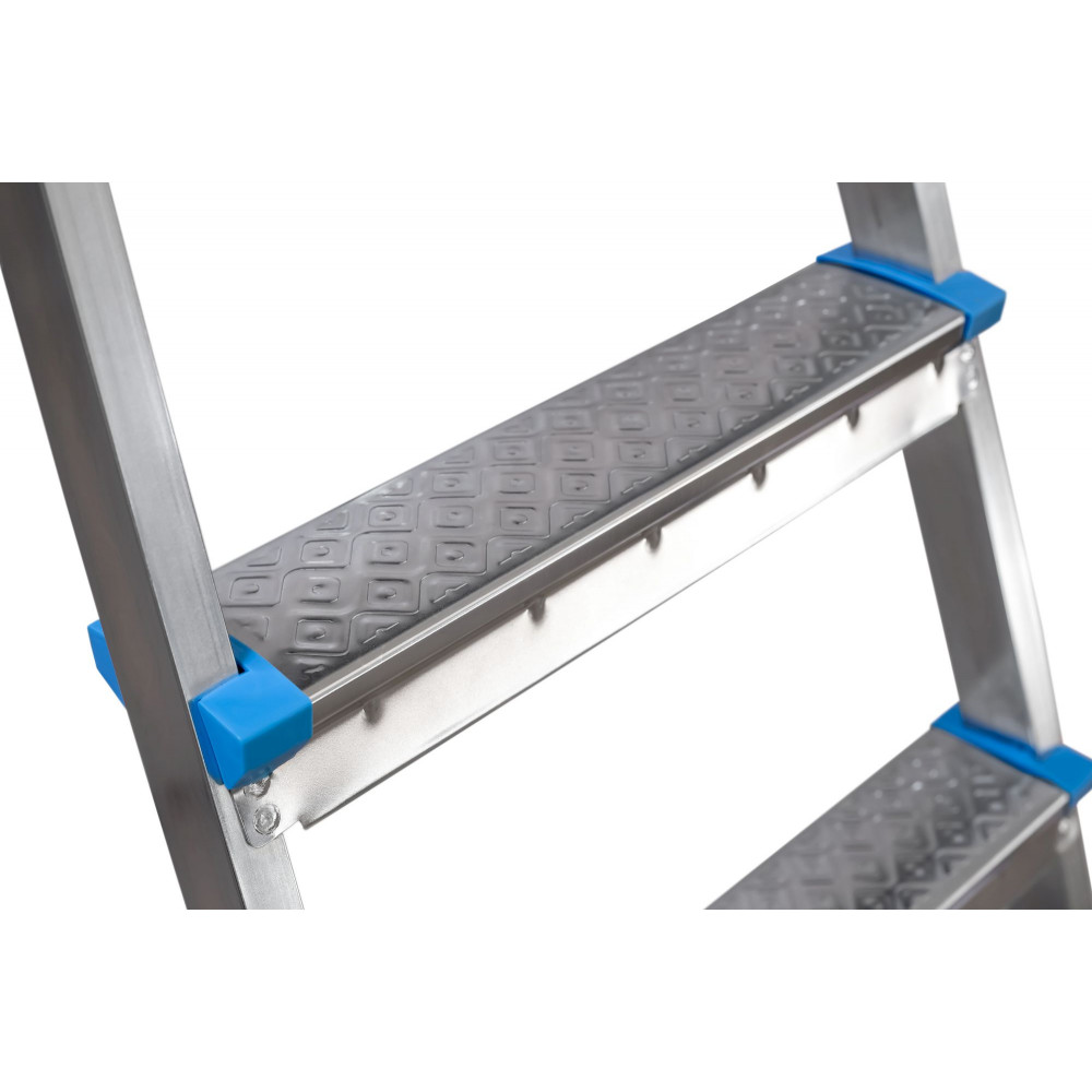 Данная модель лестницы обладает девятью ступенями и односторонним дизайном. Стальной каркас имеет специальное гальваническое покрытие. Все ступени этой стремянки надежно закреплены на двух стойках, а их рельефная поверхность помогает легче и увереннее стоять на них. Кроме того, ступеньки оборудованы особыми накладками из пластика, благодаря которым можно не опасаться серьезных порезов или ушибов. Лестница имеет достаточно широкую и комфортную площадку в своей верхней части, а высокая дуга обеспечивает дополнительную устойчивость и безопасность.