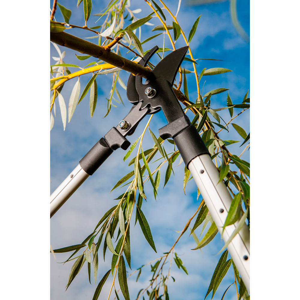 Секатор для веток телескопический TOPEX длиной 700-1000 мм и с диаметром резки до 30 мм. Секатор типа by-pass, предназначен для резки тонких и толстых веток. Лезвие длиной 96 мм с тефлоновым покрытием, обеспечивающим долгий срок службы инструмента.