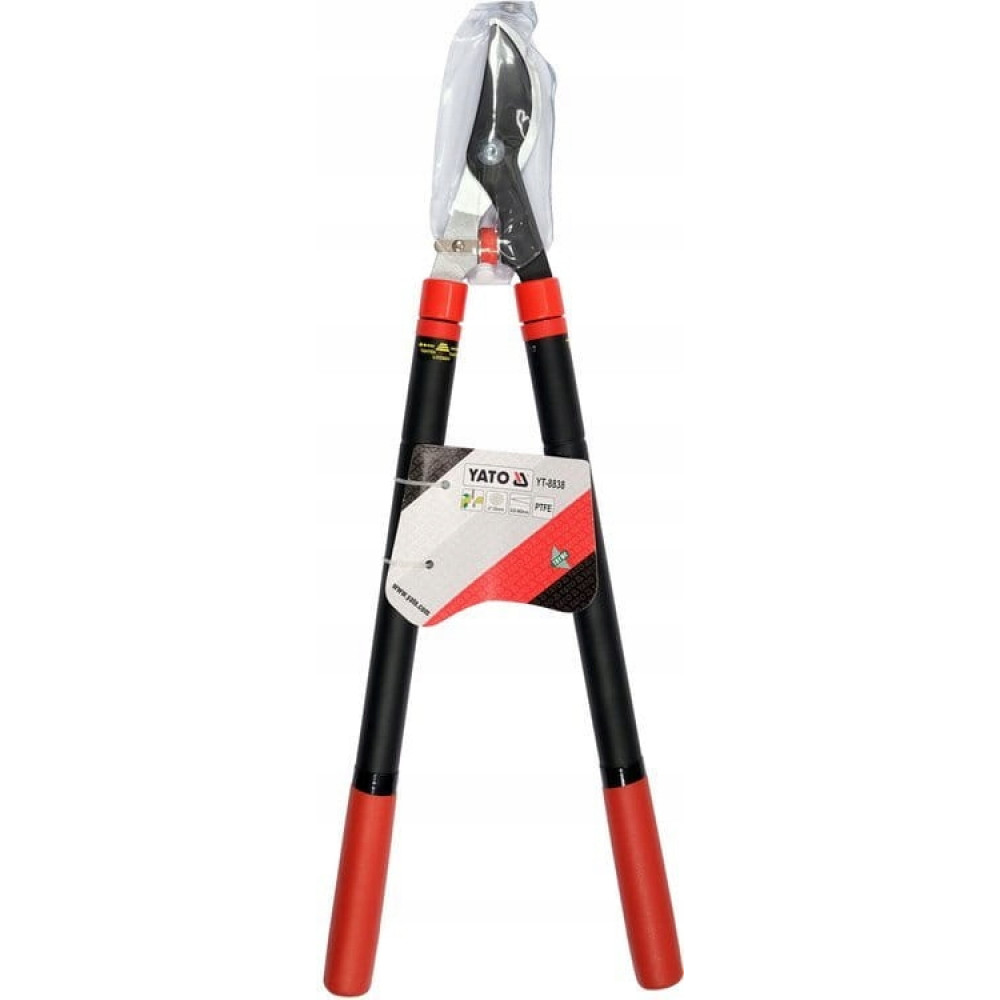 YT-8838 – это профессиональный сучкорез с телескопическими ручками от ТМ YATO. Садовый сучкорез – это специальный ручной инструмент, применяемый для обрезания сломанных ветвей и сучьев в живых изгородях из кустарников и деревьев. Благодаря стальным лезвиям со специальным покрытием от прилипания, сучкорез можно расположить близко к стволу.