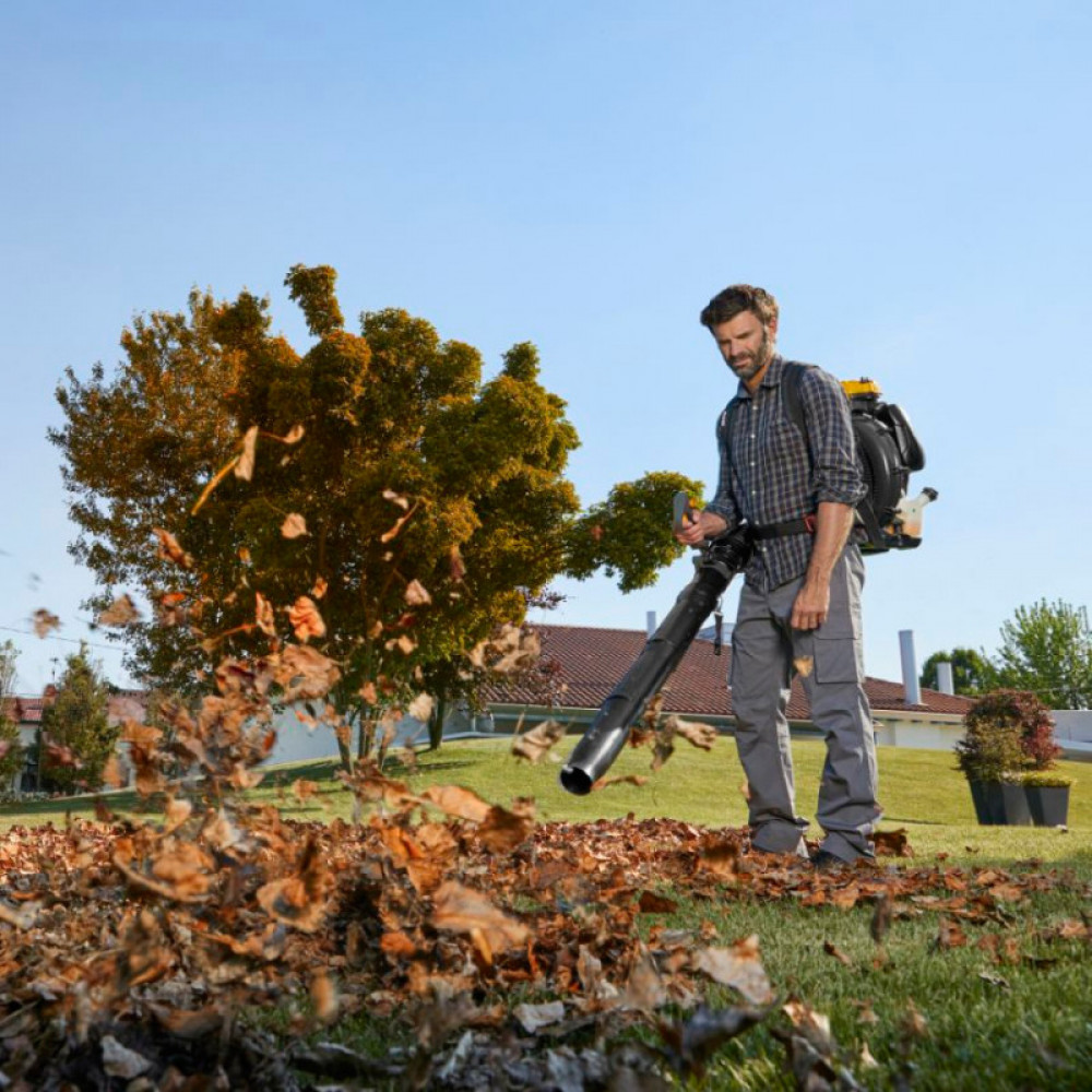 Для интенсивной работы на больших территориях, например, на больших участках в сельской местности, производителем были предусмотрены ремни ранцевого типа с плечевыми лямками и поясом. Для обслуживания фильтра имеется крышка с системой быстрого доступа. Среди преимуществ также низкое расположение топливного бака (находится в нижней части воздуходувки, объем 2,1 л) и встроенные органы управления (расположены на регулируемом джойстике).