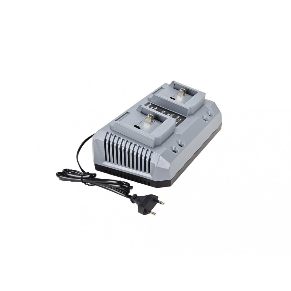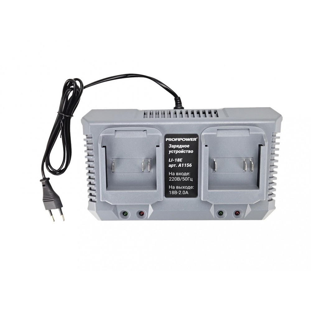 PROFIPOWER — практичное зарядное устройство, которое позволяет заряжать две батареи одновременно. На его корпусе находится индикатор зарядки, показывающий уровень заряда. Устройство оснащено специальными креплениями для стен. Питание подаётся от сети 220 В.